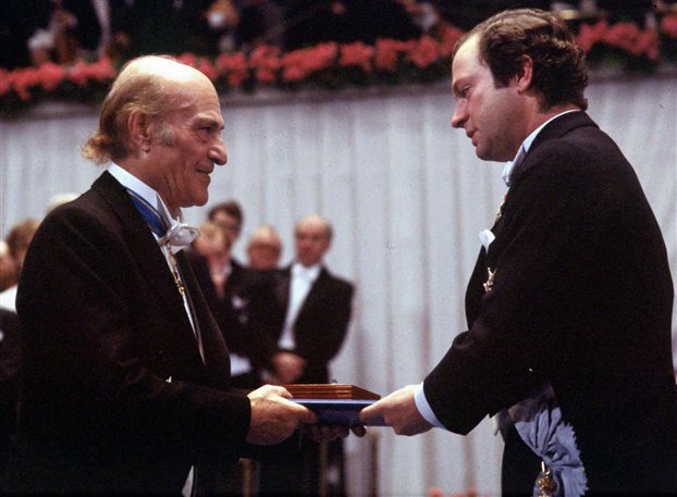 Το 1979 έρχεται η μεγάλη στιγμή για τον ποιητή. Στις 18 Οκτωβρίου η Σουηδική Ακαδημία ανακοινώνει ότι θα του απονεμηθεί το βραβείο Νόμπελ Λογοτεχνίας «για την ποίησή του, που με βάθρο την ελληνική παράδοση περιγράφει με αισθητική δύναμη και υψηλή πνευματική διακριτικότητα, τον αγώνα του σύγχρονου ανθρώπου για την ελευθερία και τη δημιουργία».