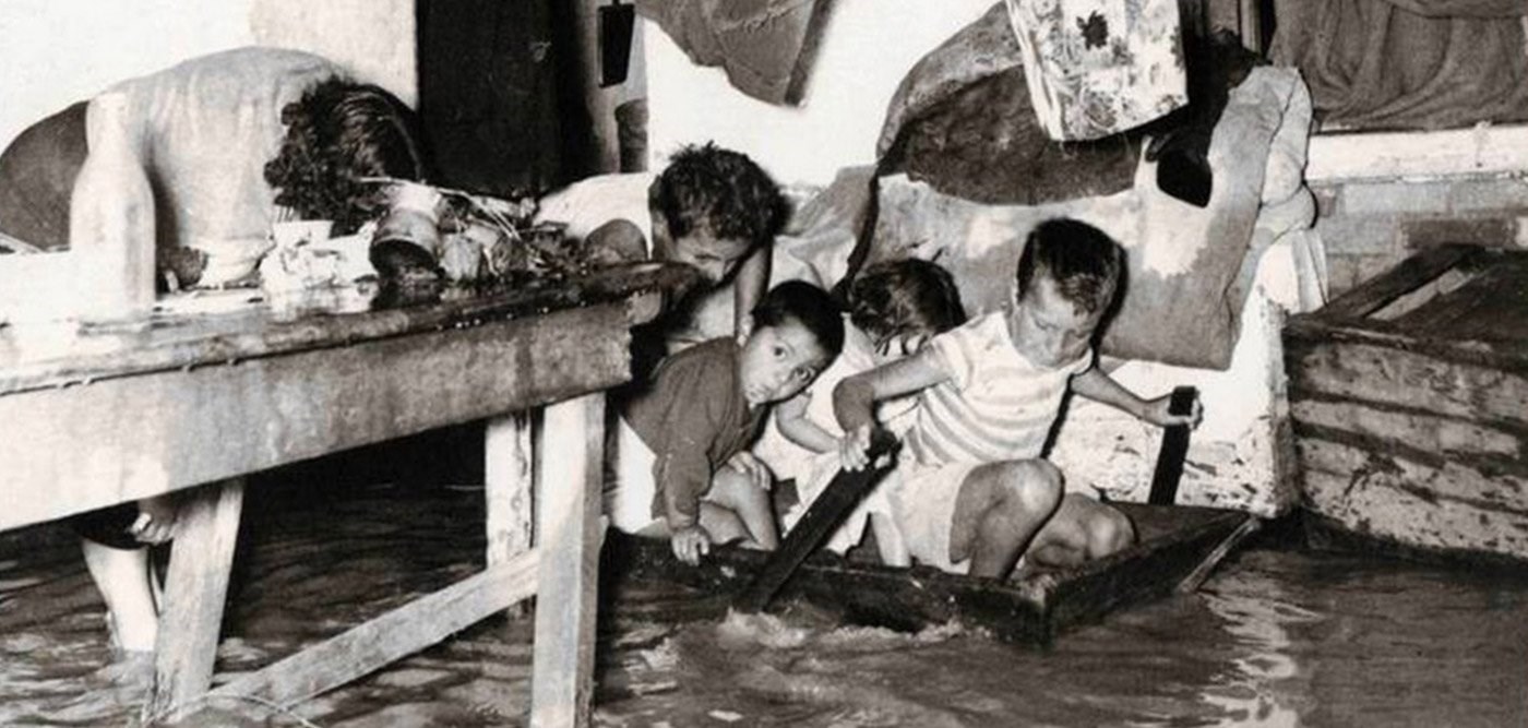 Μία από τις πιο τραγικές και καταστροφικές στιγμές της έζησε η Αθήνα τη νύχτα της 5ης προς την 6η Νοεμβρίου του 1961. Μια άγρια και παρατεταμένη νεροποντή, που ξέσπασε λίγο πριν από τα μεσάνυχτα, προκάλεσε έντονα πλημμυρικά φαινόμενα, που στοίχισαν τη ζωή σε 43 ανθρώπους, ενώ οι καταστροφές ήταν ανυπολόγιστες.Η καταστροφική πλημμύρα συνέβη δύο ημέρες μετά την ορκωμοσία της νέας κυβέρνησης του Κωνσταντίνου Γ. Καραμανλή.Γύρω στις 11:30 το βράδυ της 5ης Νοεμβρίου άνοιξαν οι κρουνοί του ουρανού και μέσα σ’ ένα τρίωρο η Αθήνα είχε μεταβληθεί σε μια απέραντη λιμνοθάλασσα. Τεράστιοι όγκοι νερού των ποταμών Κηφισού και Ιλισσού είχαν κατακλύσει τις Δυτικές και Βορειοδυτικές χαμηλές περιοχές της πρωτεύουσας. Τεράστιες ζημιές προκλήθηκαν στις περιοχές Μπουρνάζι, Νέα Λιόσια, Νέα Σφαγεία (Ταύρος), Θησείο, Αιγάλεω, Μοσχάτο, Νέο Φάληρο, Νίκαια και Άγιος Ιωάννης Ρέντη. Στην οδό Πειραιώς το ύψος του νερού έφθασε τα δύο μέτρα και προκάλεσε την καταστροφή μιας γέφυρας. Στο κέντρο της Αθήνας πολλοί δρόμοι μεταβλήθηκαν σε ορμητικούς χειμάρρους, όπως η Σίνα, η Ομήρου, η Βουκουρεστίου, η Πατησίων, η Αλεξάνδρας και η Συγγρού.Το αποτέλεσμα της θεομηνίας αυτής ήταν να πνιγούν 43 άνθρωποι, να τραυματισθούν γύρω στους 300, να καταρρεύσουν 400 σπίτια, να πλημμυρίσουν πάνω από 4.000 οικήματα και να μείνουν άστεγες πάνω από 500 οικογένειες. Ιδιαίτερα επλήγησαν οι λαϊκές συνοικίες και οι φτωχογειτονιές της λεγόμενης «Δυτικής Όχθης» (Μπουρνάζι, Ανθούπολη, Νέα Λιόσια), όπου καταμετρήθηκαν και τα περισσότερα θύματα. Σύμφωνα με το Υπουργείο Συγκοινωνιών και Δημοσίων Έργων, οι υλικές ζημίες που προκλήθηκαν ήταν οι μεγαλύτερες της τελευταίας πεντηκονταετίας.