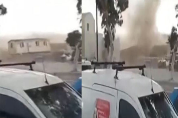 Ανεμοστρόβιλος σήκωσε στον αέρα ένα λυόμενο σπίτι στον Καρτεράδο της Σαντορίνης. Το περιστατικό συνέβη χθες, (Πέμπτη 28/9), και καταγράφηκε σε ερασιτεχνικό βίντεο, που δημοσιεύτηκε στα social media.