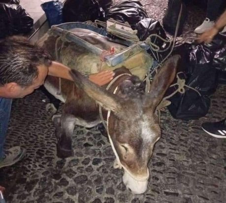 Οργή και αγανάκτηση προκαλούν για ακόμη μία φορά, οι εικόνες που κάνουν τον γύρο του διαδικτύου, με το εξαντλημένο γαϊδουράκι στην Σαντορίνη, το οποίο κατέρρευσε από το βάρος του φορτίου που κουβαλούσε.