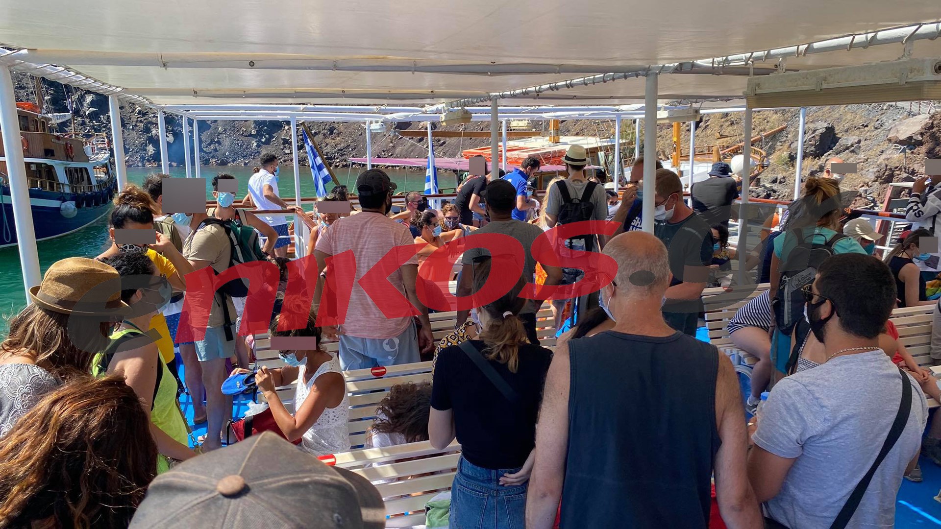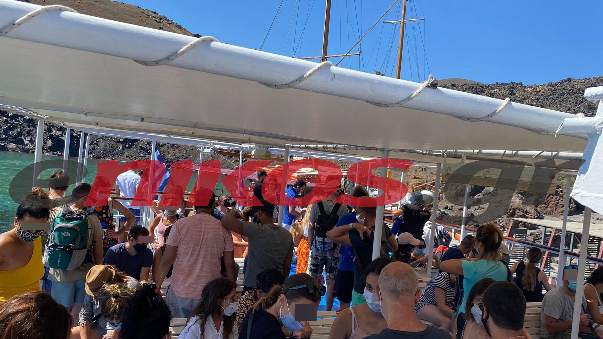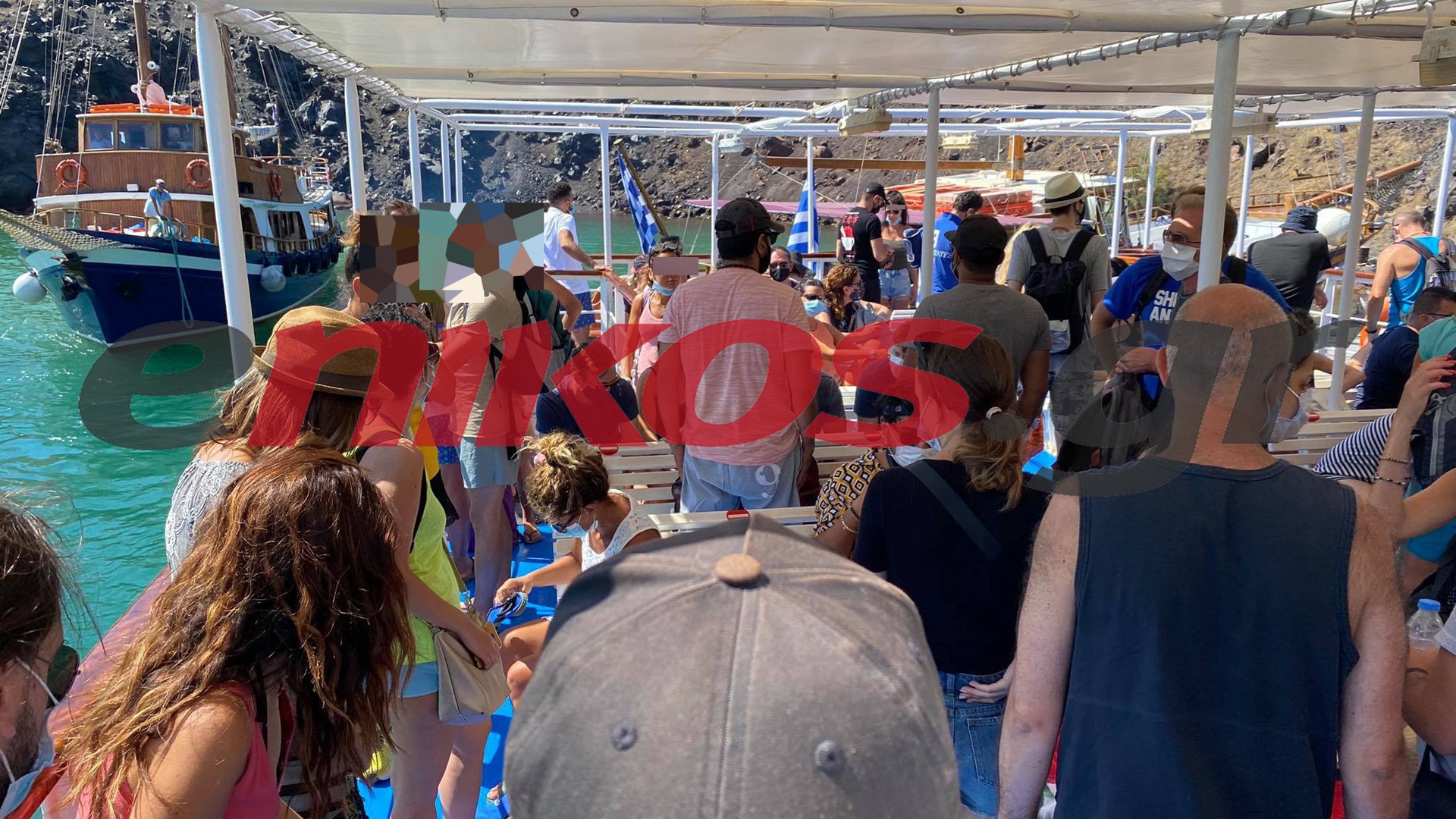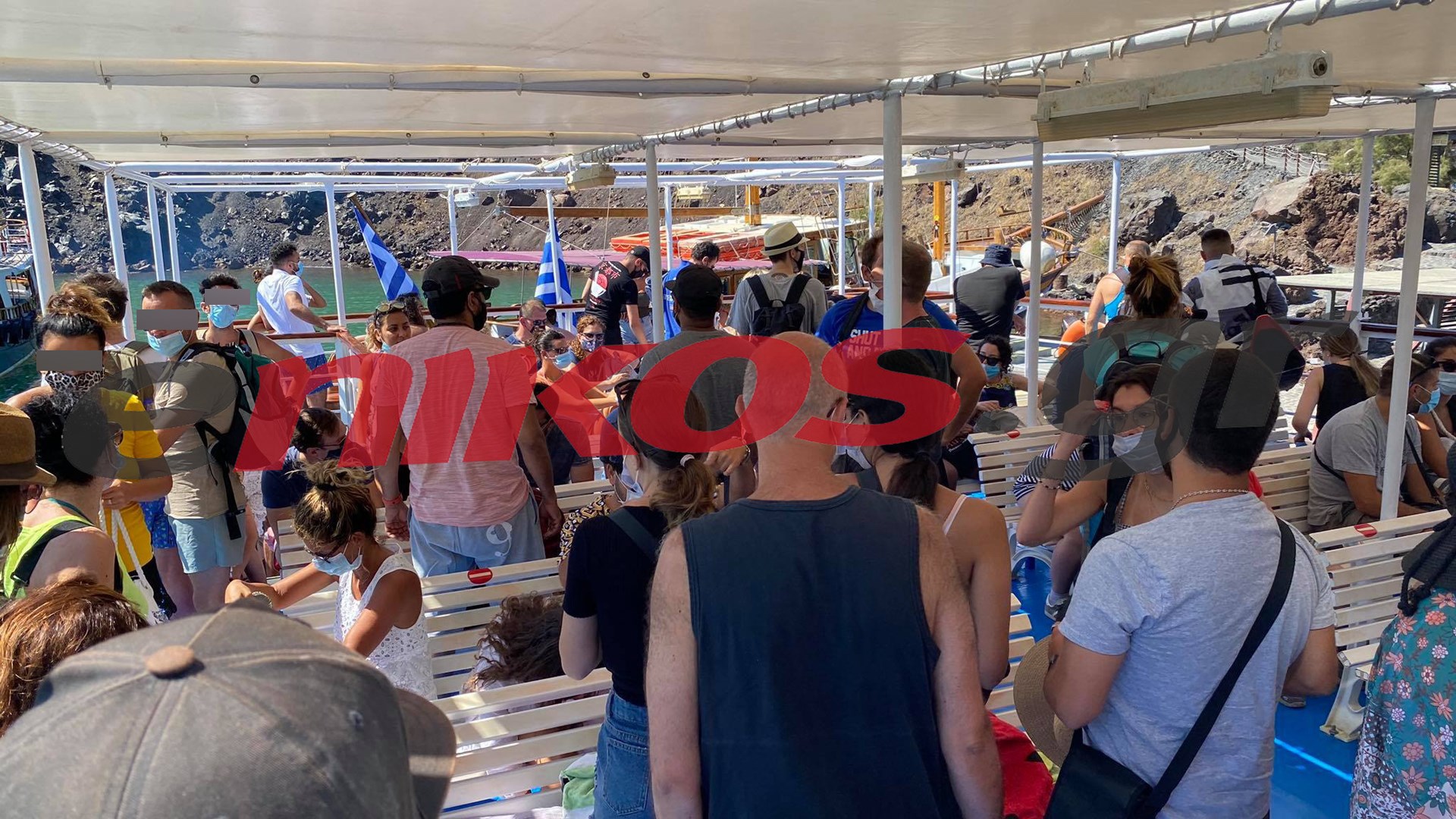 Την έλλειψη μέτρων προστασίας αλλά και το υπεράριθμο επιβατών στα καραβάκια που κάνουν την κρουαζιέρα στη Σαντορίνη υπογραμμίζει αναγνώστης του enikos.gr, που έστειλε και φωτογραφίες για να επισημάνει το πρόβλημα.