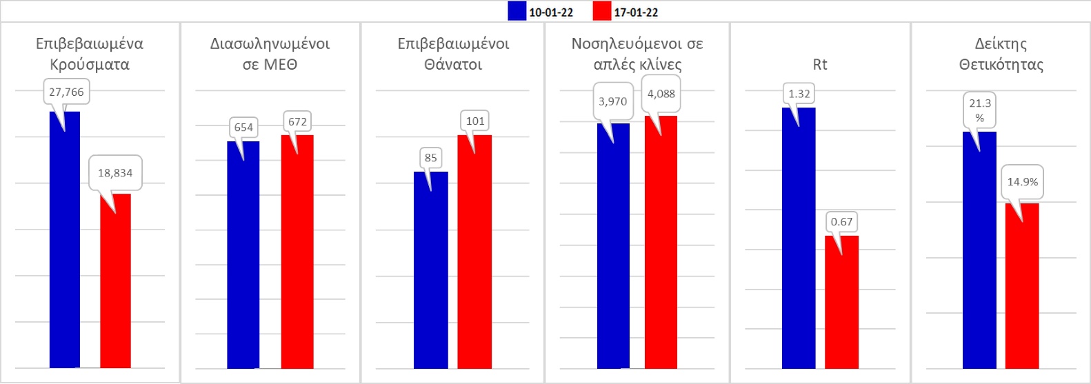 Σχήμα 59. Συγκριτικά αποτελέσματα της επιδημιολογικής εικόνας της χθεσινής Δευτέρας (17/01/2022) σε σχέση με τη προηγούμενη (10/01/2022)