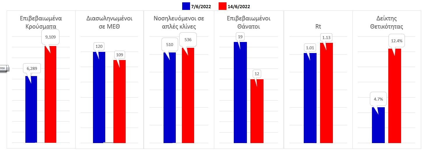 Σχήμα 59 . Συγκριτικά αποτελέσματα της επιδημιολογικής εικόνας της σημερινής Τρίτης (14/06/2022) σε σχέση με την προηγούμενη (07/06/2022)