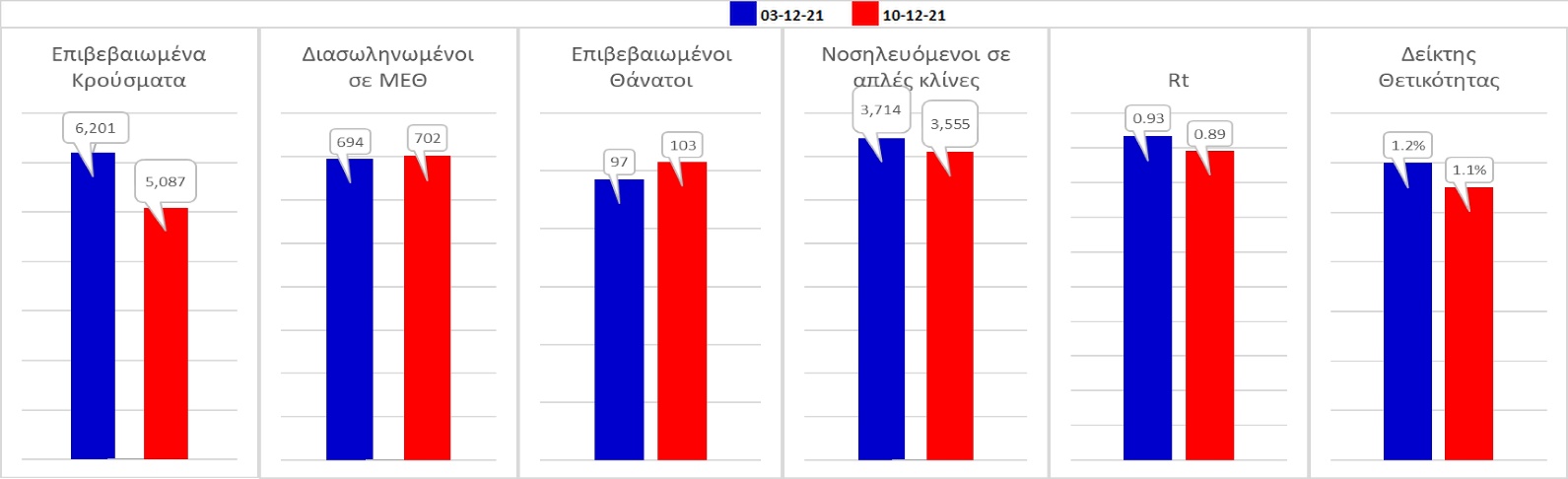 Σχήμα 59. Συγκριτικά αποτελέσματα της επιδημιολογικής εικόνας της σημερινής Παρασκευής (10/12/2021) σε σχέση με την προηγούμενη (02/12/2021)