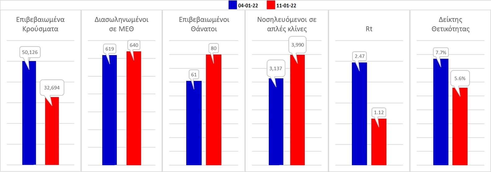 Σχήμα 59. Συγκριτικά αποτελέσματα της επιδημιολογικής εικόνας της σημερινής Τρίτης (11/01/2022) σε σχέση με τη προηγούμενη (04/01/2022)