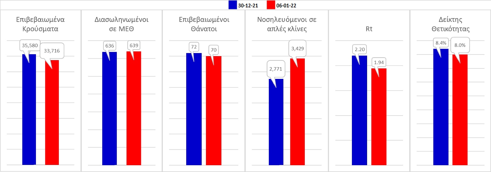 Σχήμα 59. Συγκριτικά αποτελέσματα της επιδημιολογικής εικόνας της σημερινής Τετάρτης (05/01/2022) σε σχέση με τη προηγούμενη (29/12/2021)