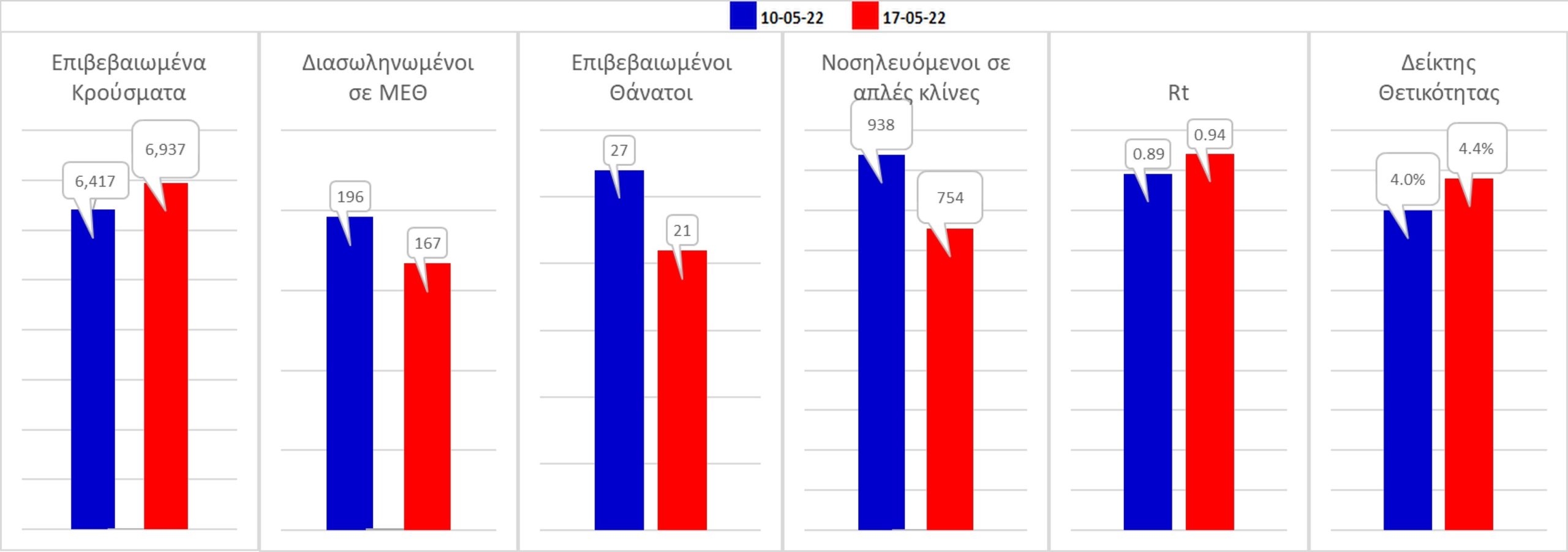 Σχήμα 59. Συγκριτικά αποτελέσματα της επιδημιολογικής εικόνας της σημερινής Τρίτης (17/05/2022) σε σχέση με την προηγούμενη (10/05/2022)