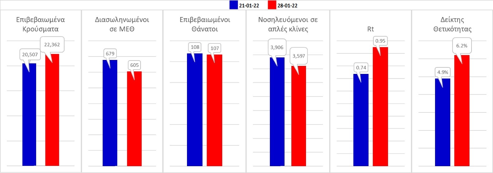 Σχήμα 59. Συγκριτικά αποτελέσματα της επιδημιολογικής εικόνας της Παρασκευή (28/01/2022) σε σχέση με το προηγούμενο (21/01/2022)