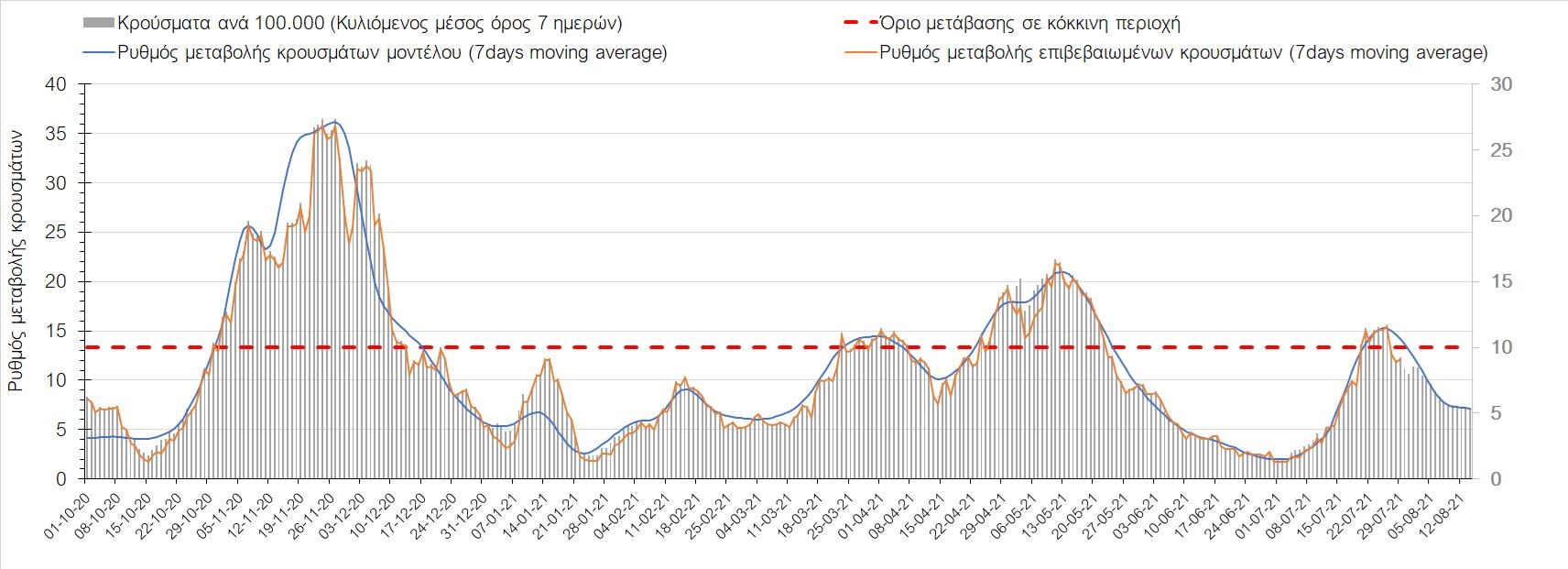 - Θεωρήσαμε ότι από τις αρχές Αυγούστου, θα έχουμε αύξηση των επαφών λόγω της μαζικής εξόδου των διακοπών, με τρόπο παραπλήσιο με αυτόν που παρατηρήθηκε το καλοκαίρι του 2020.