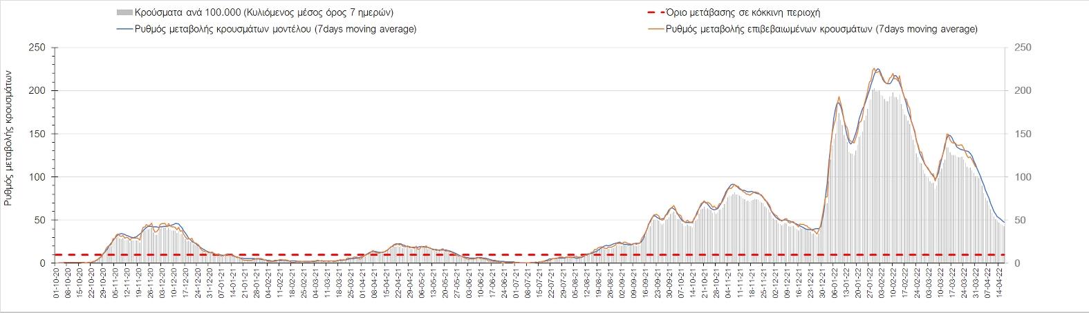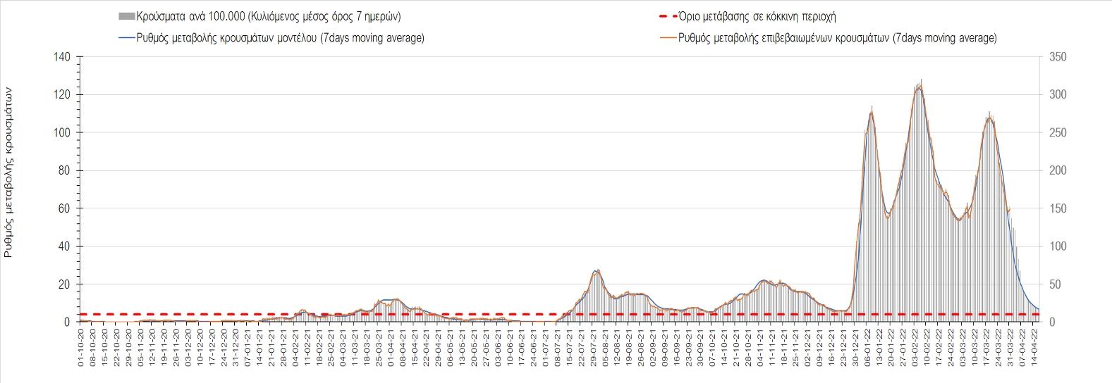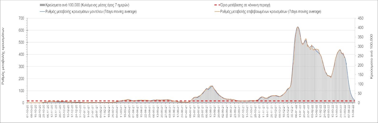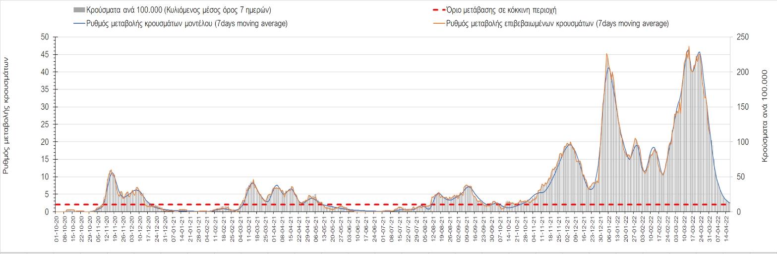 Αξίζει να σημειωθεί ότι η μείωση του ρυθμού εμβολιασμού με την αναμνηστική δόση, συντελεί καθοριστικά στην επιβράδυνση της αποκλιμάκωσης που παρατηρείται τις τελευταίες ημέρες, και ότι η διατήρηση του τείχους ανοσίας, είναι υψίστης σημασίας για την πορεία της πανδημίας.