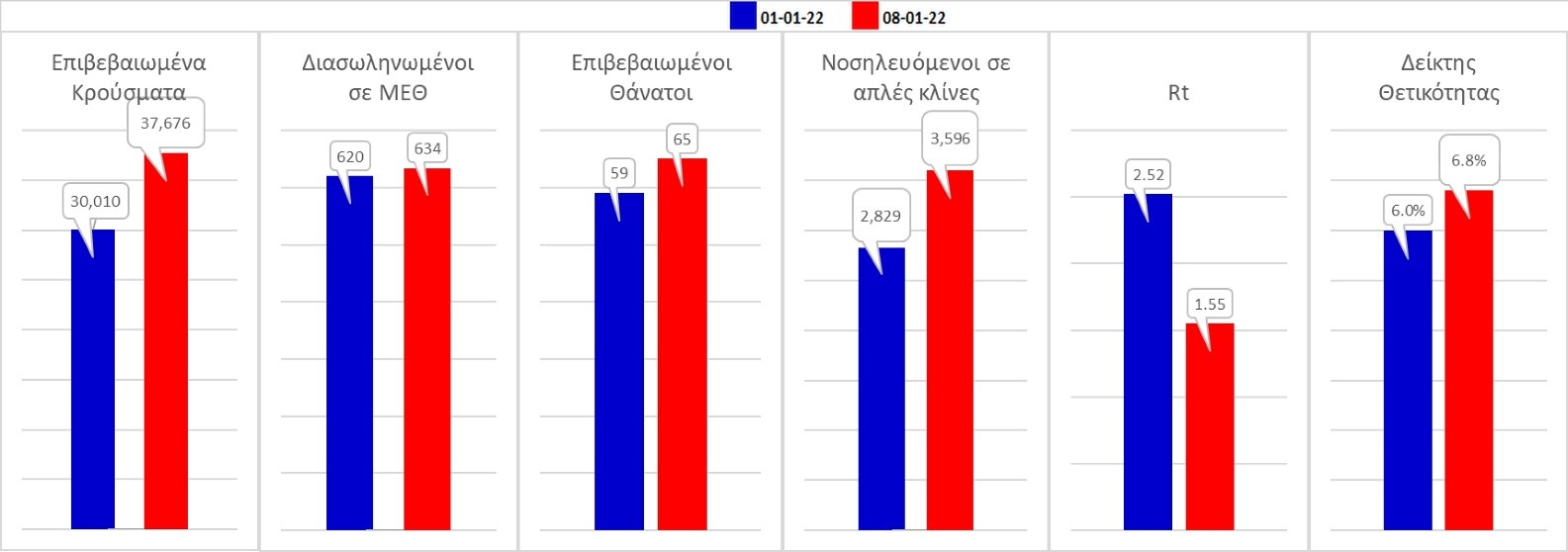 Σχήμα 59. Συγκριτικά αποτελέσματα της επιδημιολογικής εικόνας της Παρασκευής (07/01/2022) σε σχέση με τη προηγούμενη (31/12/2021)
