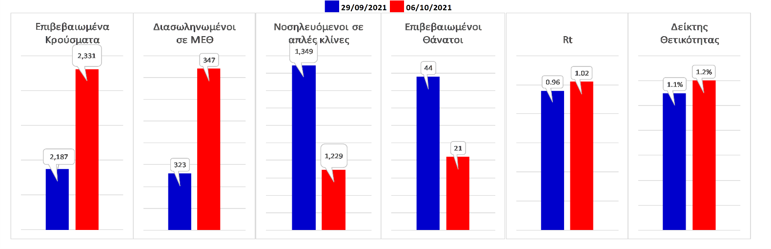 Σχήμα 58. Συγκριτικά αποτελέσματα της επιδημιολογικής εικόνας της σημερινής Τετάρτης (06/10/2021) σε σχέση με το προηγούμενο (29/09/2021)
