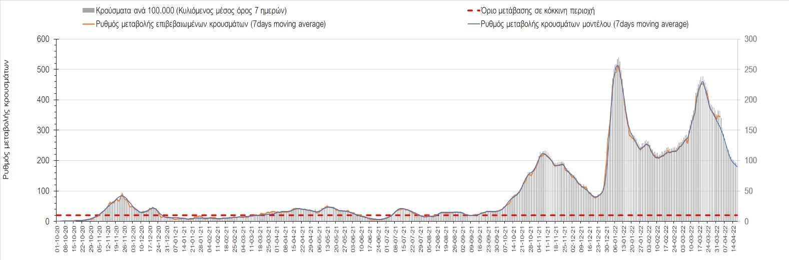 Αξίζει να σημειωθεί ότι η μείωση του ρυθμού εμβολιασμού με την αναμνηστική δόση, συντελεί καθοριστικά στην επιβράδυνση της αποκλιμάκωσης που παρατηρείται τις τελευταίες ημέρες, και ότι η διατήρηση του τείχους ανοσίας, είναι υψίστης σημασίας για την πορεία της πανδημίας.