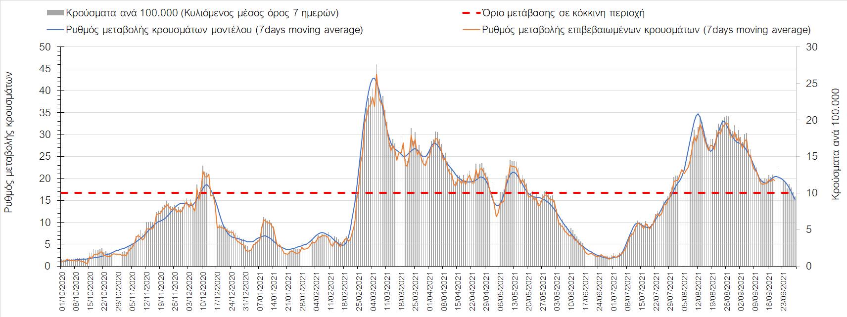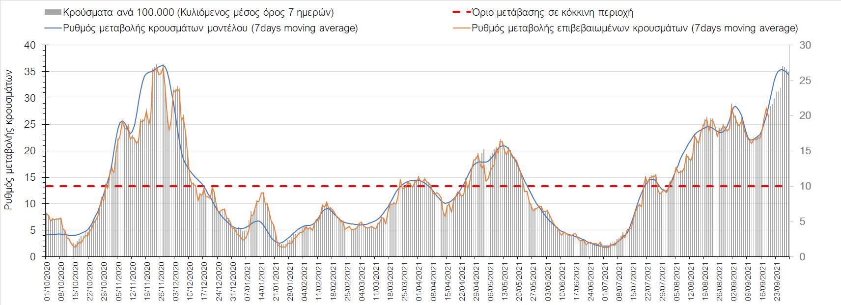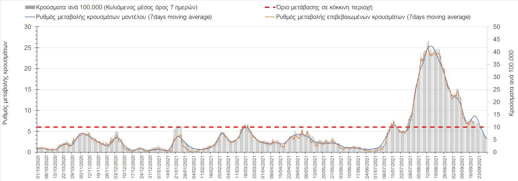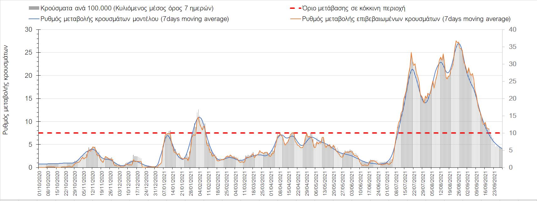 Αναμένουμε τις επόμενες ημέρες για να δούμε τις επιπτώσεις της επιστροφής του κύματος εξόδου του Αυγούστου, σε συνδυασμό με το άνοιγμα των σχολείων στην πορεία της πανδημίας. Αξίζει επίσης να σημειωθεί ότι οι υψηλές θερμοκρασίες των προηγουμένων ημερών, συντέλεσαν στη μείωση της μεταδοτικότητας και συνέβαλλαν στη συγκράτηση του αριθμού των κρουσμάτων, αλλά ήδη αρχίζει να διαφαίνεται επιβράδυνση της πτωτικής πορείας.