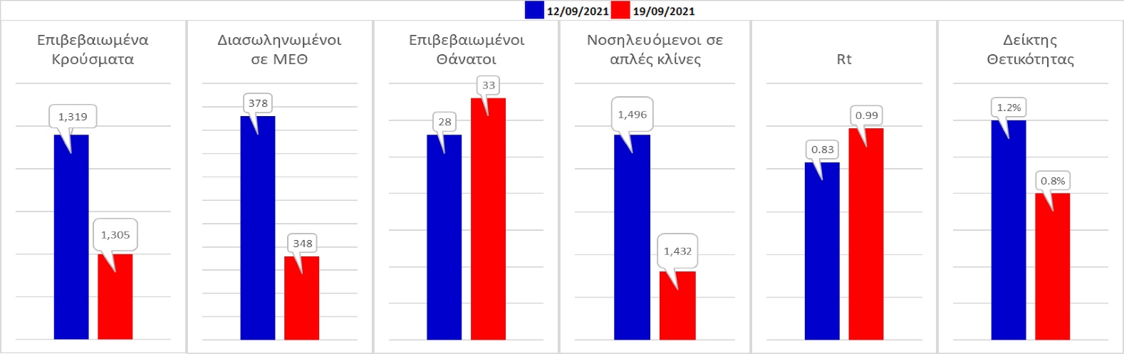 Σχήμα 58. Συγκριτικά αποτελέσματα της επιδημιολογικής εικόνας της Κυριακής (19/09/2021) σε σχέση με το προηγούμενη (12/09/2021)