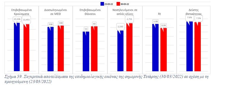 Η επιδημιολογική εικόνα χθες σε σχέση με την εικόνα την προηγούμενη Τετάρτη, παρουσιάζεται στα συγκριτικά συγκεντρωτικά αποτελέσματα που δίνονται στο Σχήμα 59.