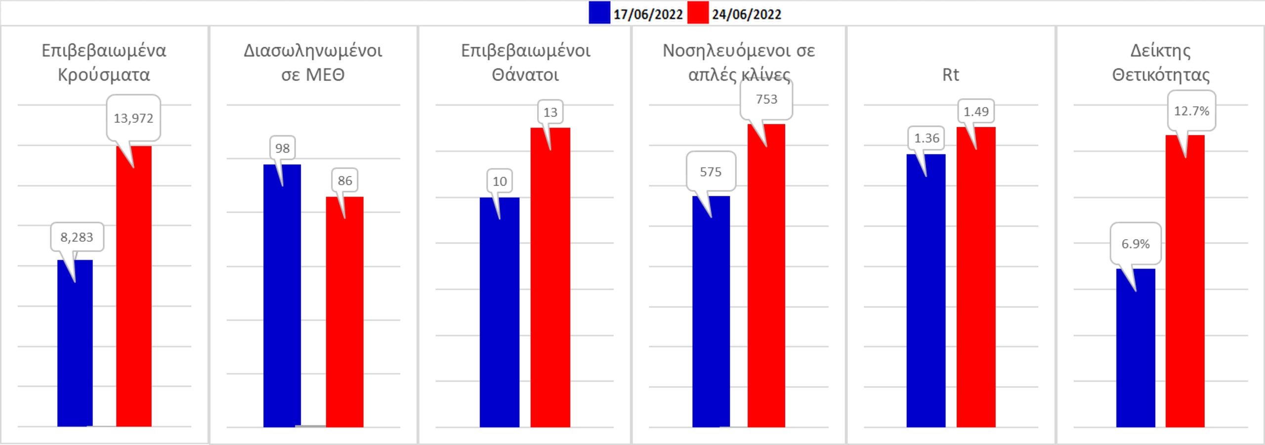 Σχήμα 59. Συγκριτικά αποτελέσματα της επιδημιολογικής εικόνας της σημερινής Παρασκευής (24/06/2022) σε σχέση με την προηγούμενη (17/06/2022)