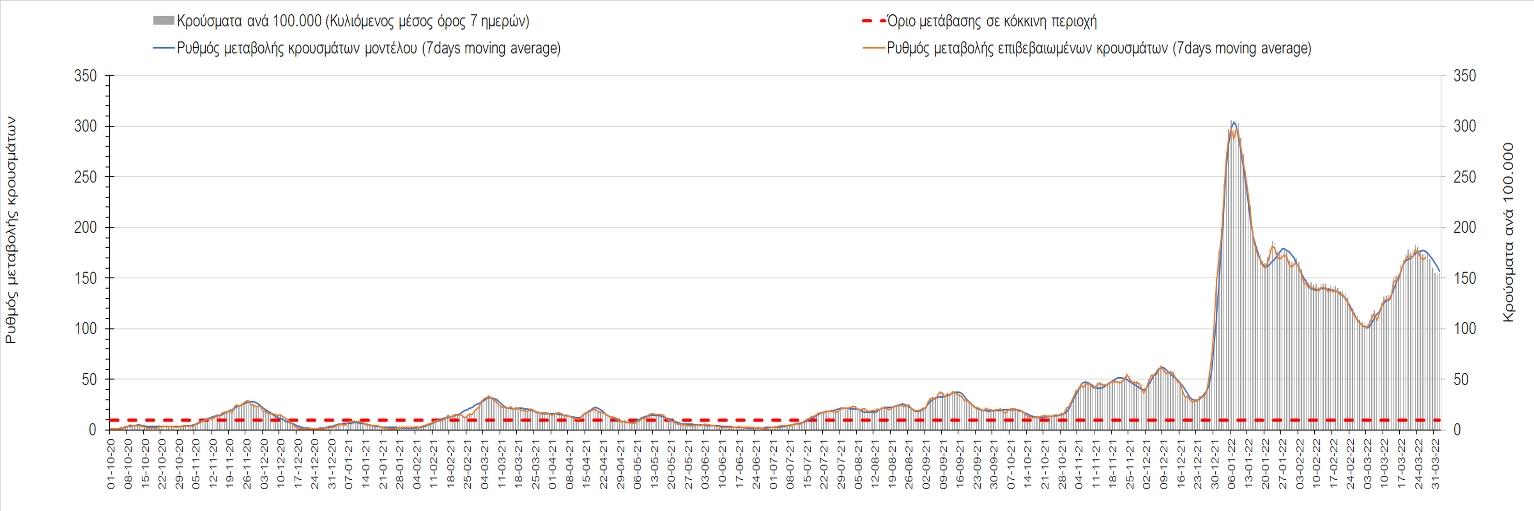 Αξίζει να σημειωθεί ότι η μείωση του ρυθμού εμβολιασμού με την αναμνηστική δόση, συντελεί καθοριστικά στην επιβράδυνση της αποκλιμάκωσης που παρατηρείται τις τελευταίες ημέρες, και ότι η διατήρηση του τείχους ανοσίας, είναι υψίστης σημασίας για την πορεία της πανδημίας.
