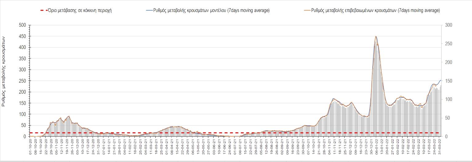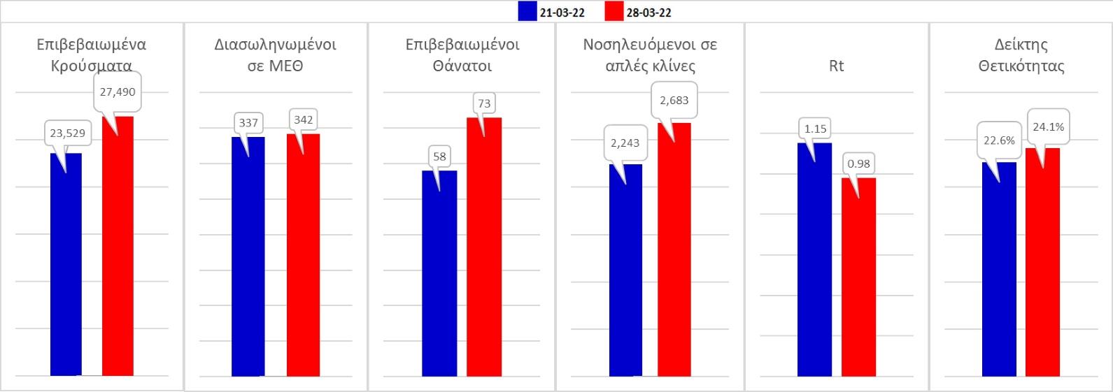 Σχήμα 59. Συγκριτικά αποτελέσματα της επιδημιολογικής εικόνας της Δευτέρας (28/03/2022) σε σχέση με τη προηγούμενη (21/03/2022)