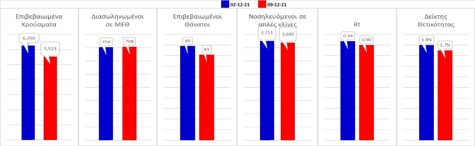 Σχήμα 59. Συγκριτικά αποτελέσματα της επιδημιολογικής εικόνας της σημερινής Πέμπτης (09/12/2021) σε σχέση με την προηγούμενη (01/12/2021)