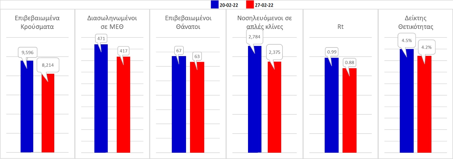 Σχήμα 59. Συγκριτικά αποτελέσματα της επιδημιολογικής εικόνας της σημερινής Κυριακής (27/02/2022) σε σχέση με την προηγούμενη (20/02/2022)