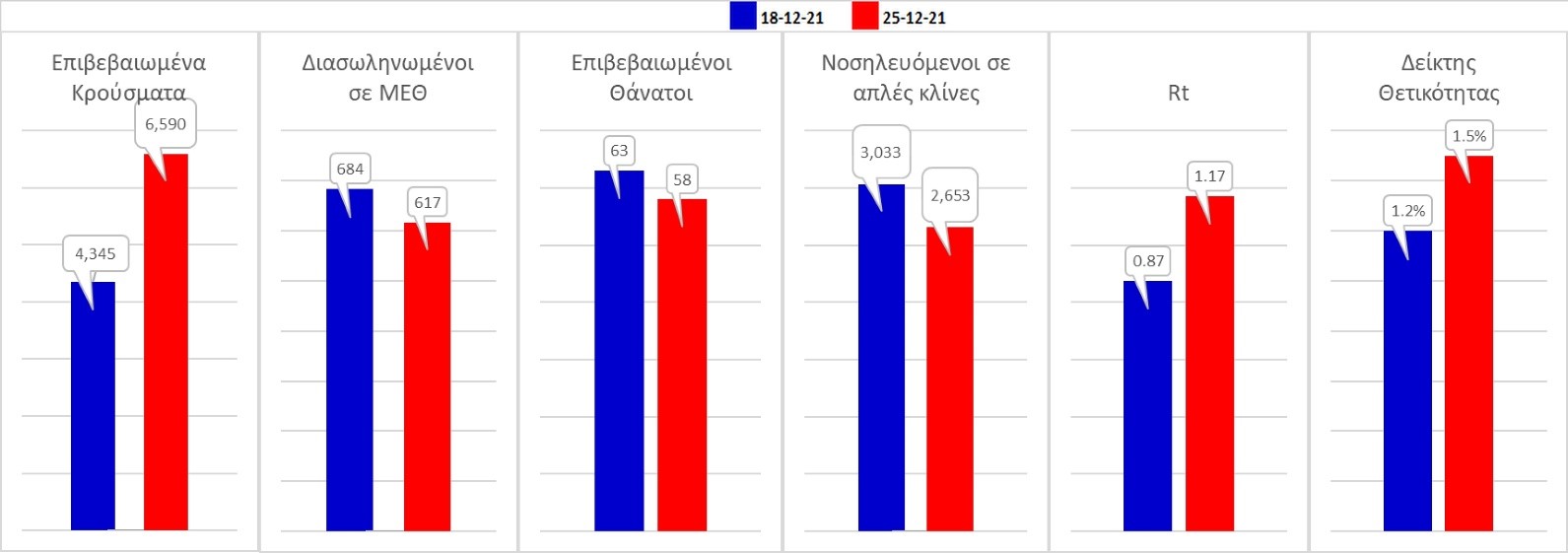 Σχήμα 59. Συγκριτικά αποτελέσματα της επιδημιολογικής εικόνας του χθεσινού Σαββάτου (25/12/2021) σε σχέση με την προηγούμενη (18/12/2021)