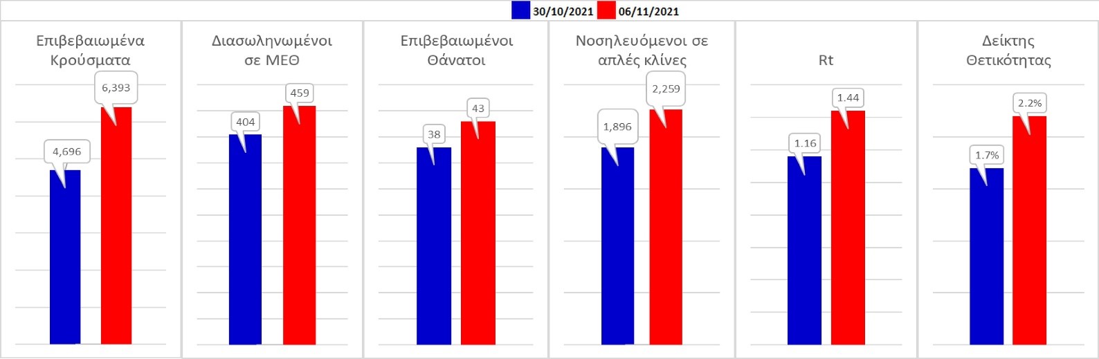 Σχήμα 59. Συγκριτικά αποτελέσματα της επιδημιολογικής εικόνας του σημερινού Σαββάτου (06/11/2021) σε σχέση με το προηγούμενη (30/10/2021)