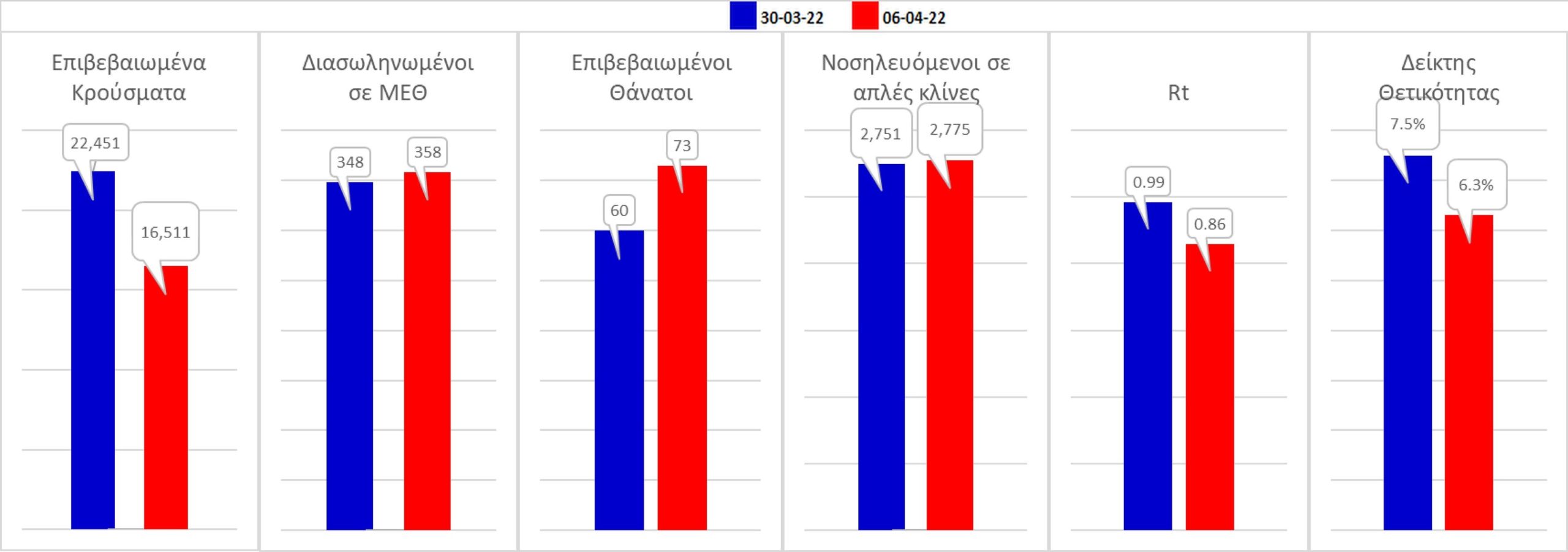 Σχήμα 59. Συγκριτικά αποτελέσματα της επιδημιολογικής εικόνας της Τετάρτης (06/04/2022) σε σχέση με την προηγούμενη (30/03/2022)