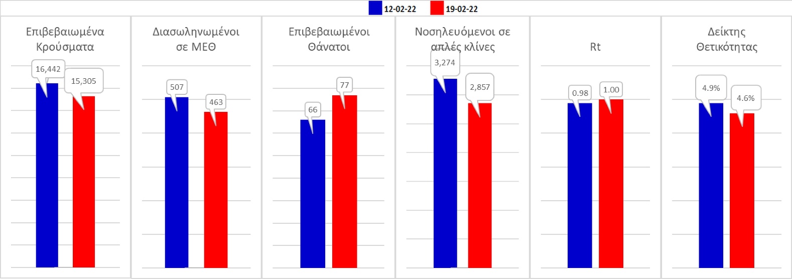 Σχήμα 59. Συγκριτικά αποτελέσματα της επιδημιολογικής εικόνας του Σαββάτου (19/02/2022) σε σχέση με την προηγούμενη (12/02/2022)