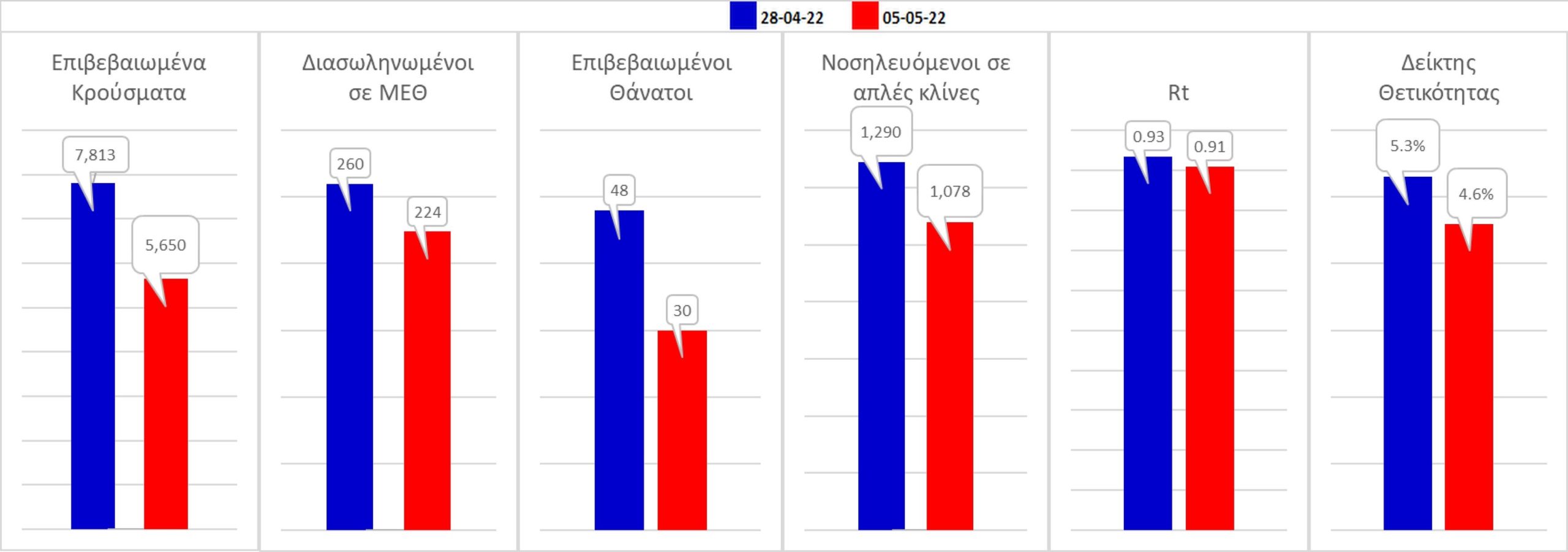 Σχήμα 59. Συγκριτικά αποτελέσματα της επιδημιολογικής εικόνας της Πέμπτης (05/05/2022) σε σχέση με την προηγούμενη (28/04/2022)