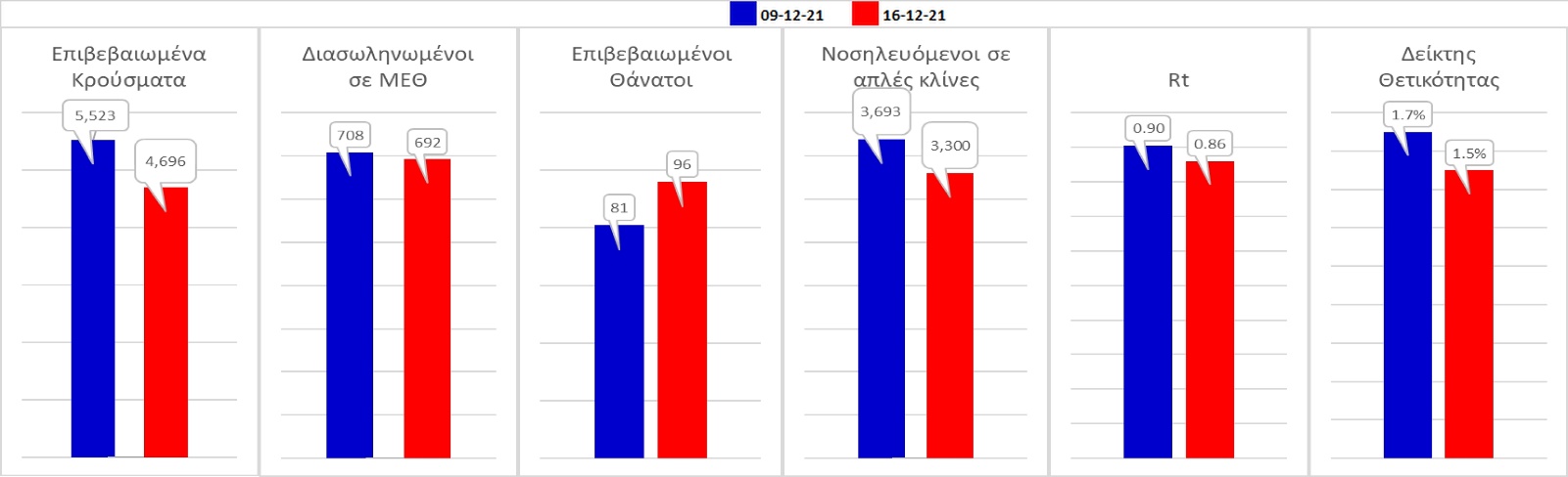 Σχήμα 59. Συγκριτικά αποτελέσματα της επιδημιολογικής εικόνας της σημερινής Πέμπτης (16/12/2021) σε σχέση με την προηγούμενη (08/12/2021)
