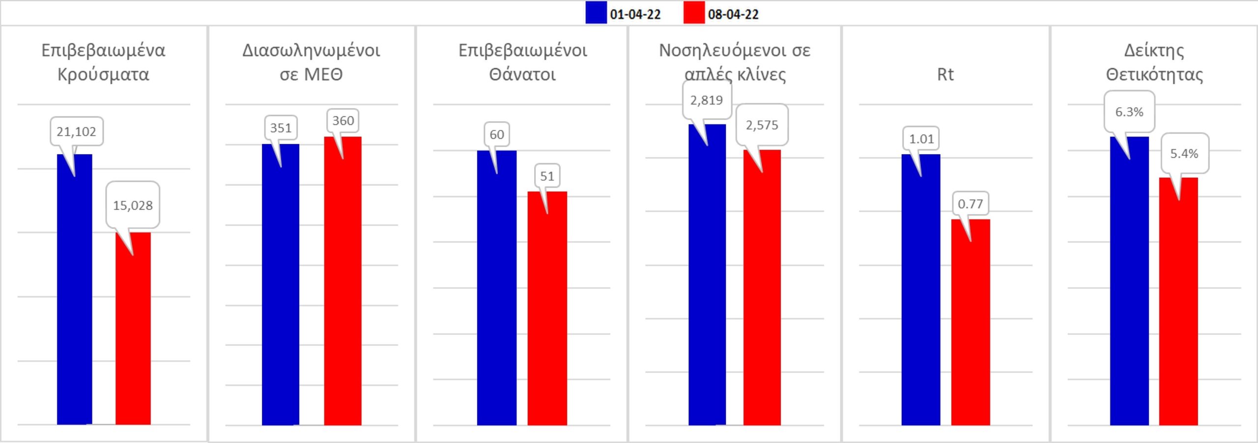 Σχήμα 59. Συγκριτικά αποτελέσματα της επιδημιολογικής εικόνας της Παρασκευής (08/04/2022) σε σχέση με την προηγούμενη (01/04/2022)