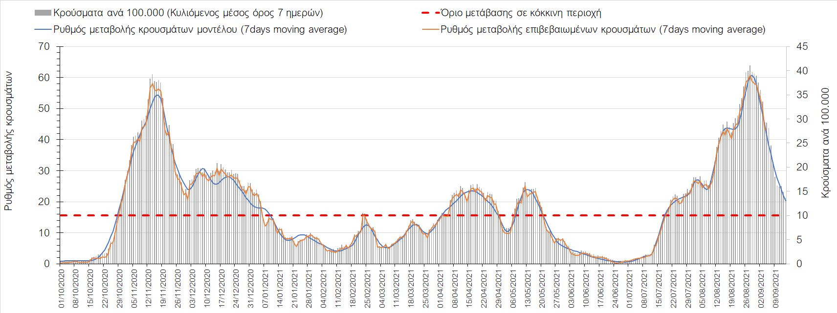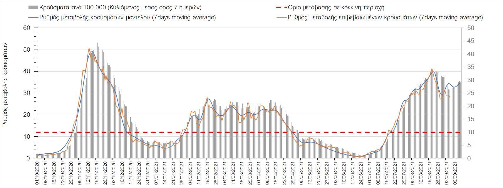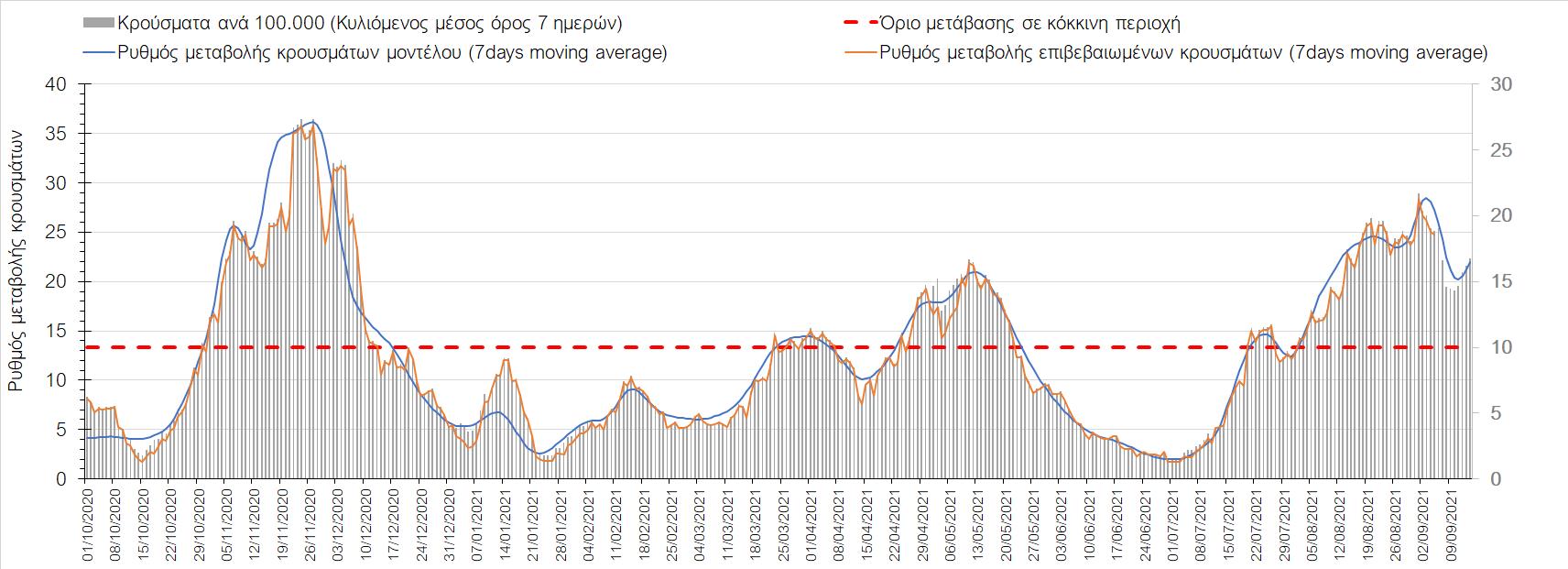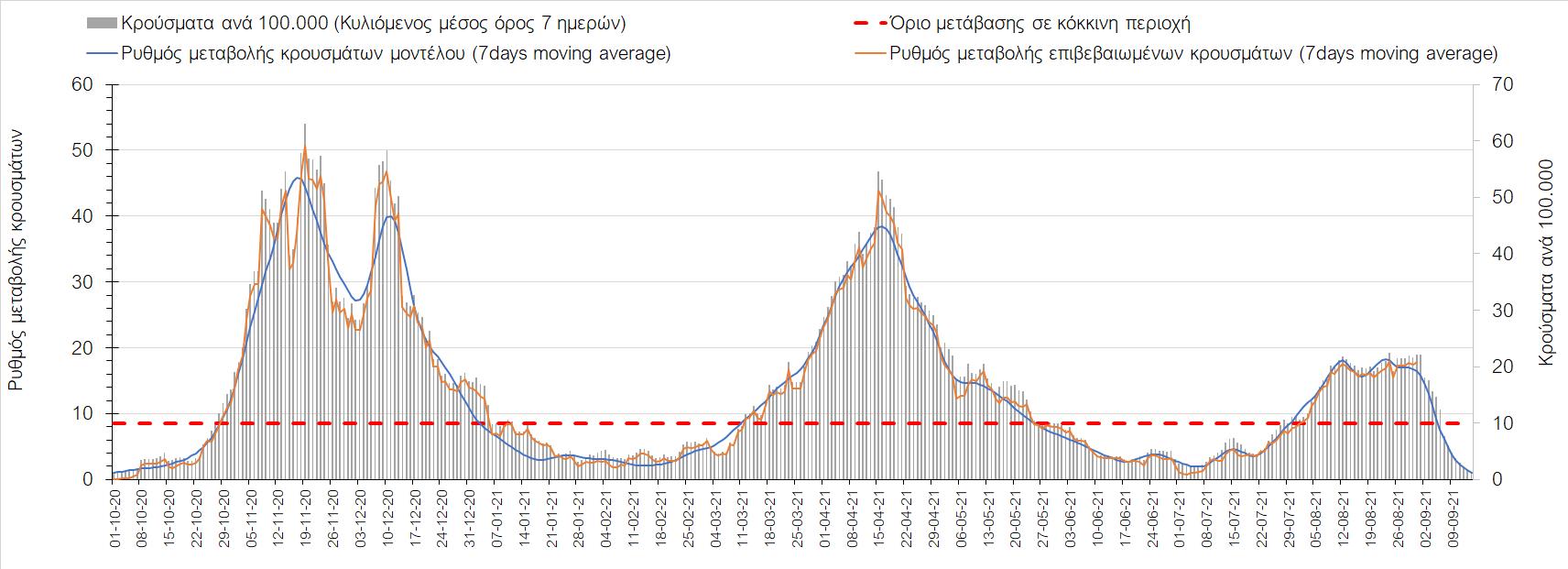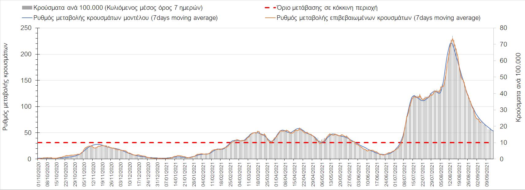 Αναμένουμε τις επόμενες ημέρες για να δούμε τις επιπτώσεις της επιστροφής του κύματος εξόδου του Αυγούστου στην πορεία της πανδημίας. Αξίζει επίσης να σημειωθεί ότι οι υψηλές θερμοκρασίες των προηγουμένων ημερών, συντέλεσαν στη μείωση της μεταδοτικότητας και συνέβαλλαν στη συγκράτηση του αριθμού των κρουσμάτων, ενώ το ίδιο θα συμβεί και στις επόμενες ημέρες.