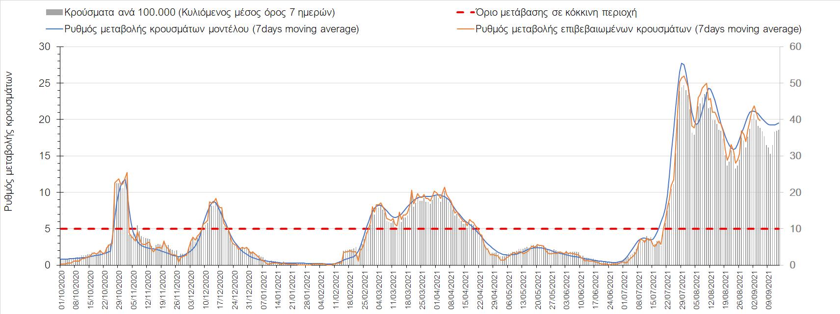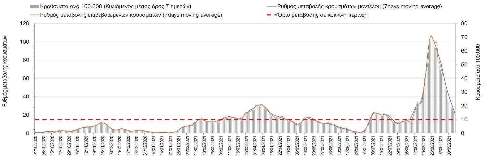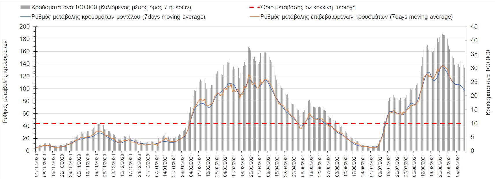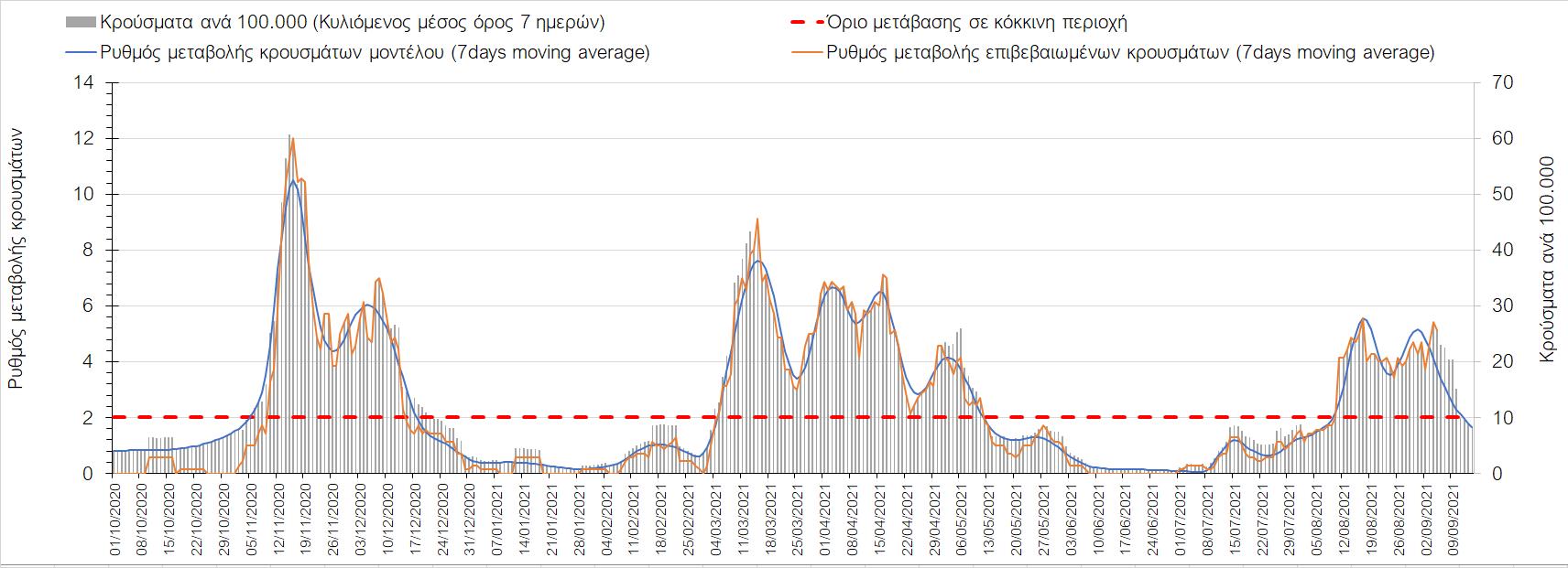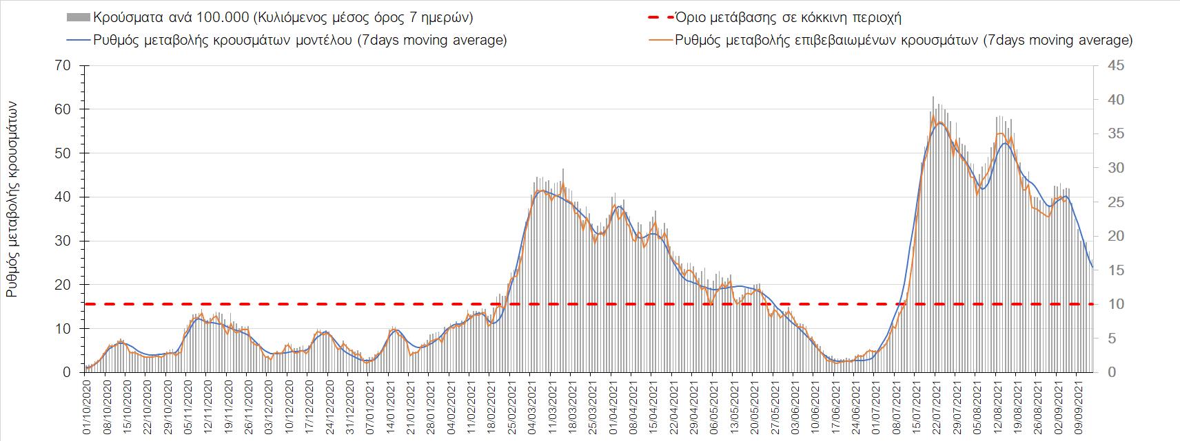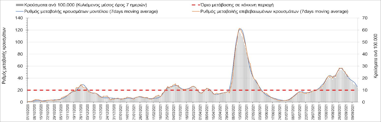 Αναμένουμε τις επόμενες ημέρες για να δούμε τις επιπτώσεις της επιστροφής του κύματος εξόδου του Αυγούστου στην πορεία της πανδημίας. Αξίζει επίσης να σημειωθεί ότι οι υψηλές θερμοκρασίες των προηγουμένων ημερών, συντέλεσαν στη μείωση της μεταδοτικότητας και συνέβαλλαν στη συγκράτηση του αριθμού των κρουσμάτων, ενώ το ίδιο θα συμβεί και στις επόμενες ημέρες.