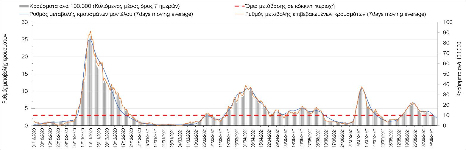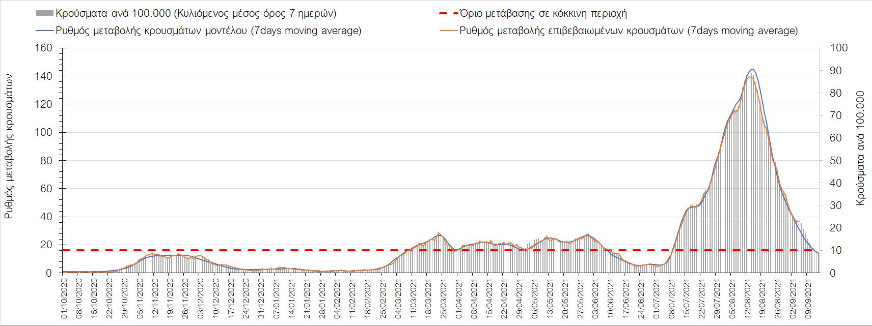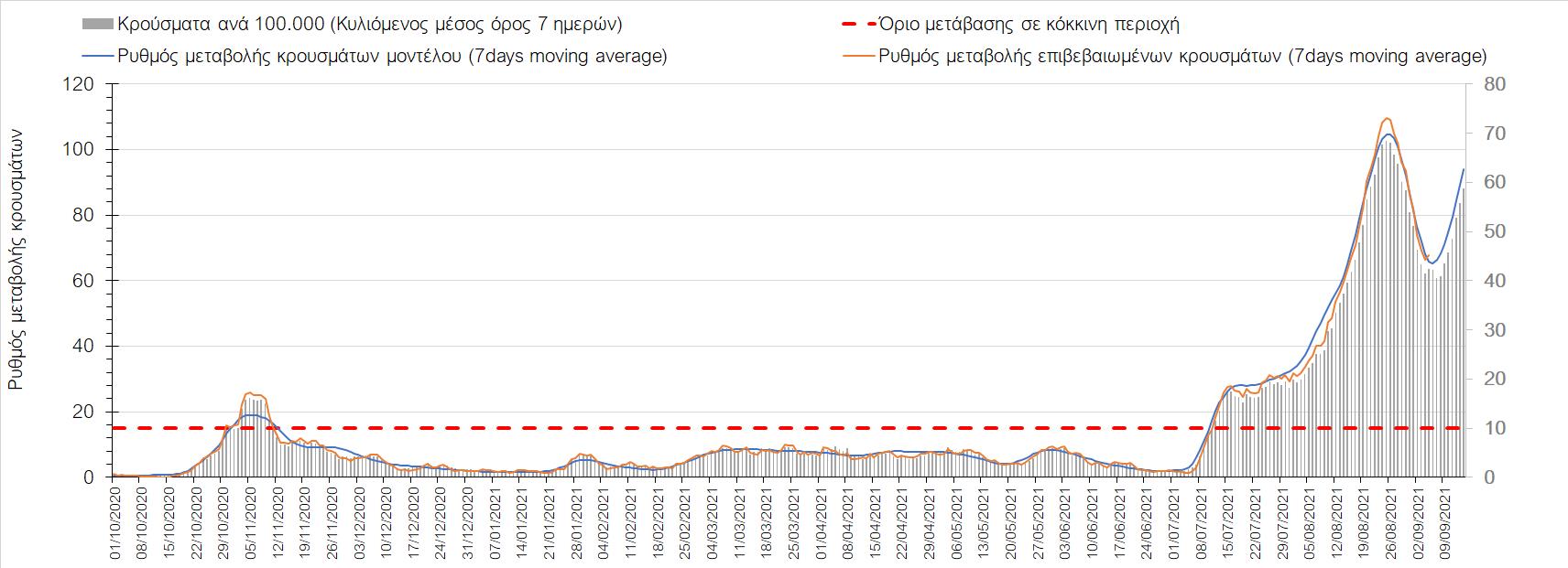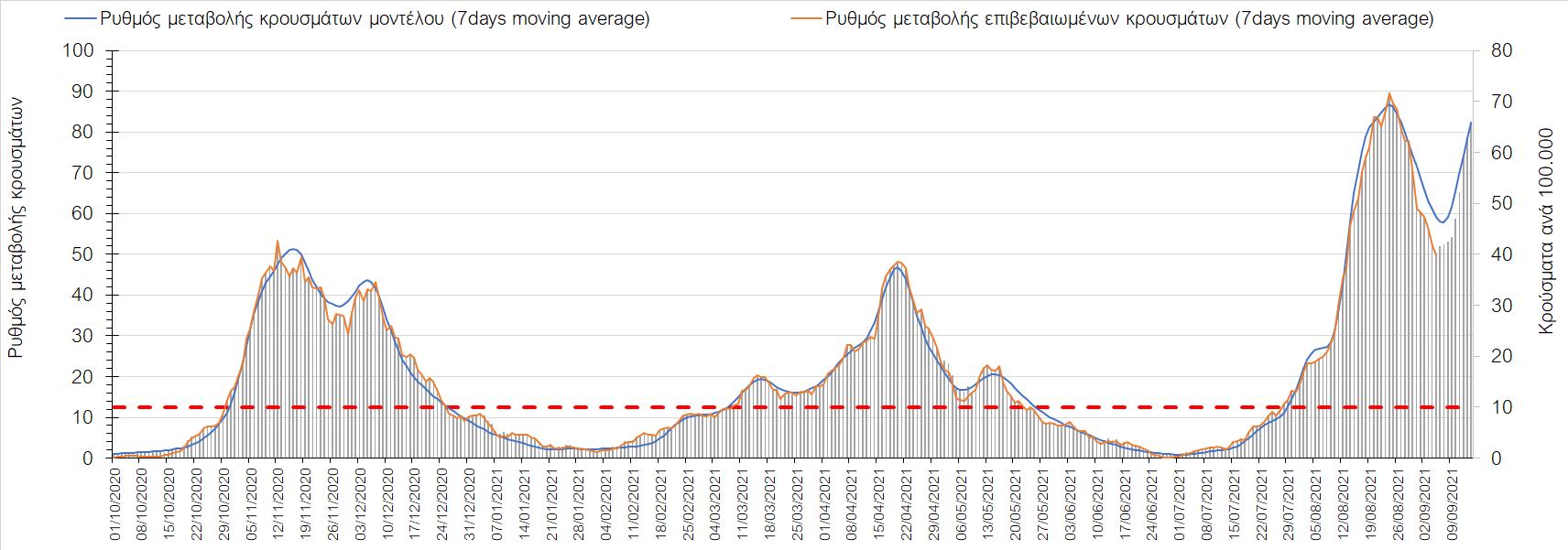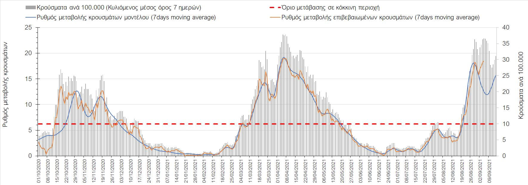 Αναμένουμε τις επόμενες ημέρες για να δούμε τις επιπτώσεις της επιστροφής του κύματος εξόδου του Αυγούστου στην πορεία της πανδημίας. Αξίζει επίσης να σημειωθεί ότι οι υψηλές θερμοκρασίες των προηγουμένων ημερών, συντέλεσαν στη μείωση της μεταδοτικότητας και συνέβαλλαν στη συγκράτηση του αριθμού των κρουσμάτων, ενώ το ίδιο θα συμβεί και στις επόμενες ημέρες.