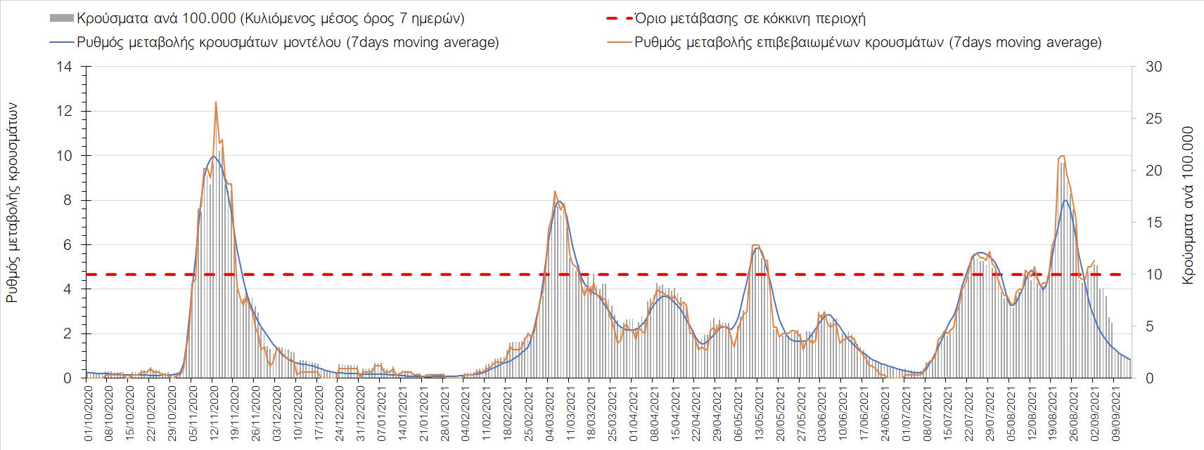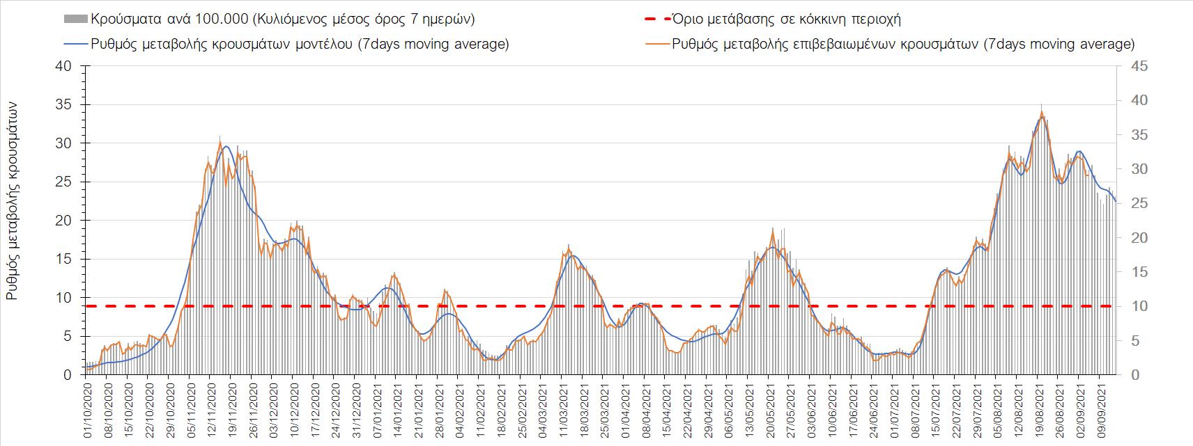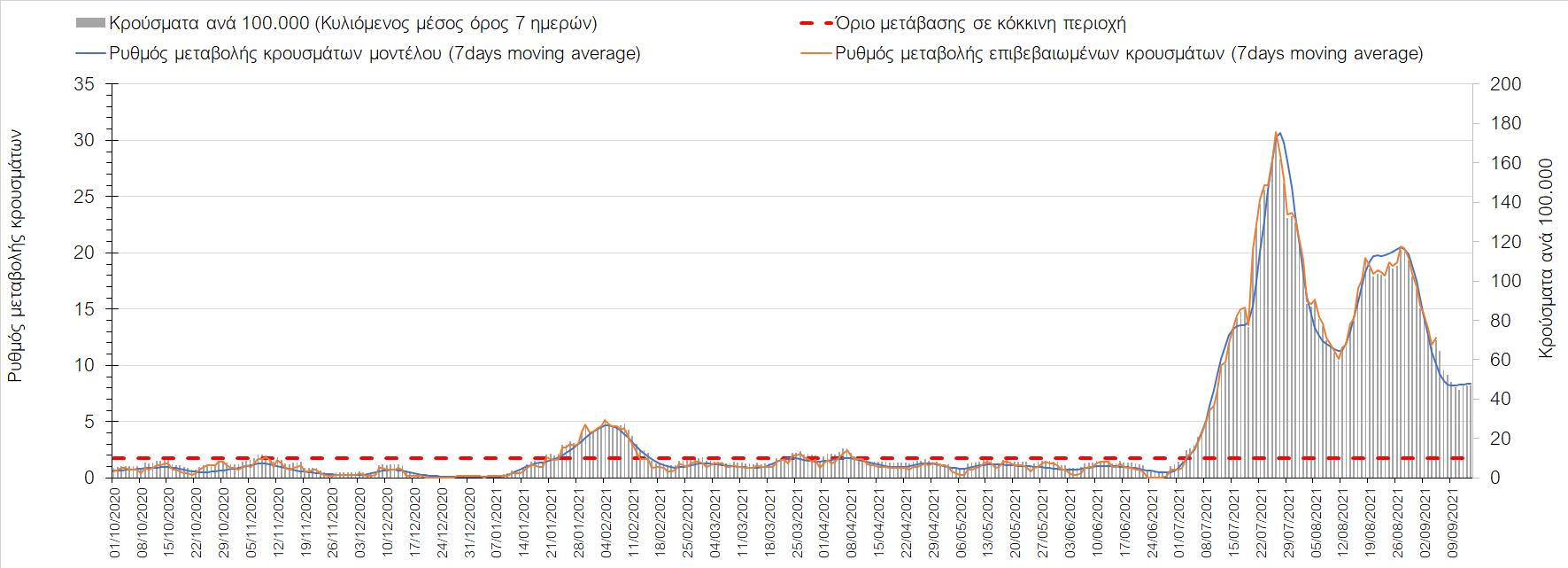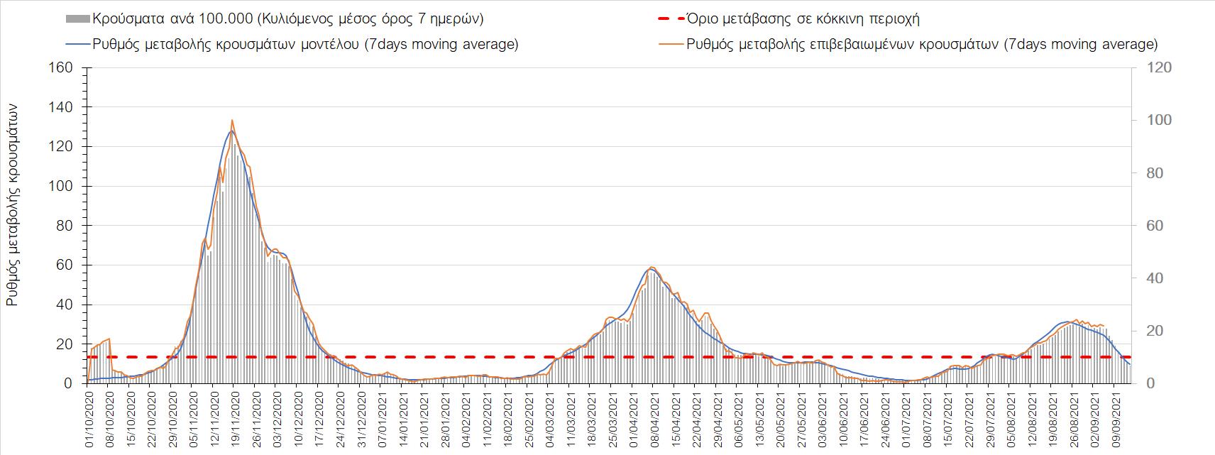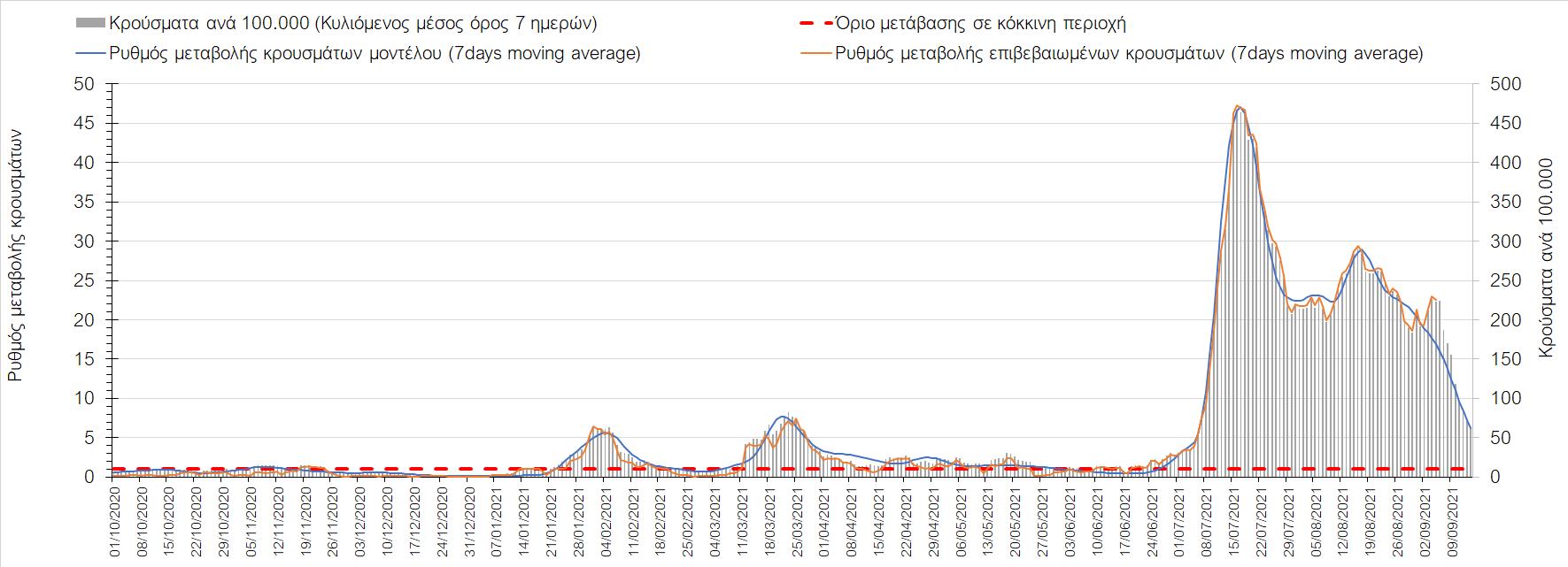 Αναμένουμε τις επόμενες ημέρες για να δούμε τις επιπτώσεις της επιστροφής του κύματος εξόδου του Αυγούστου στην πορεία της πανδημίας. Αξίζει επίσης να σημειωθεί ότι οι υψηλές θερμοκρασίες των προηγουμένων ημερών, συντέλεσαν στη μείωση της μεταδοτικότητας και συνέβαλλαν στη συγκράτηση του αριθμού των κρουσμάτων, ενώ το ίδιο θα συμβεί και στις επόμενες ημέρες.