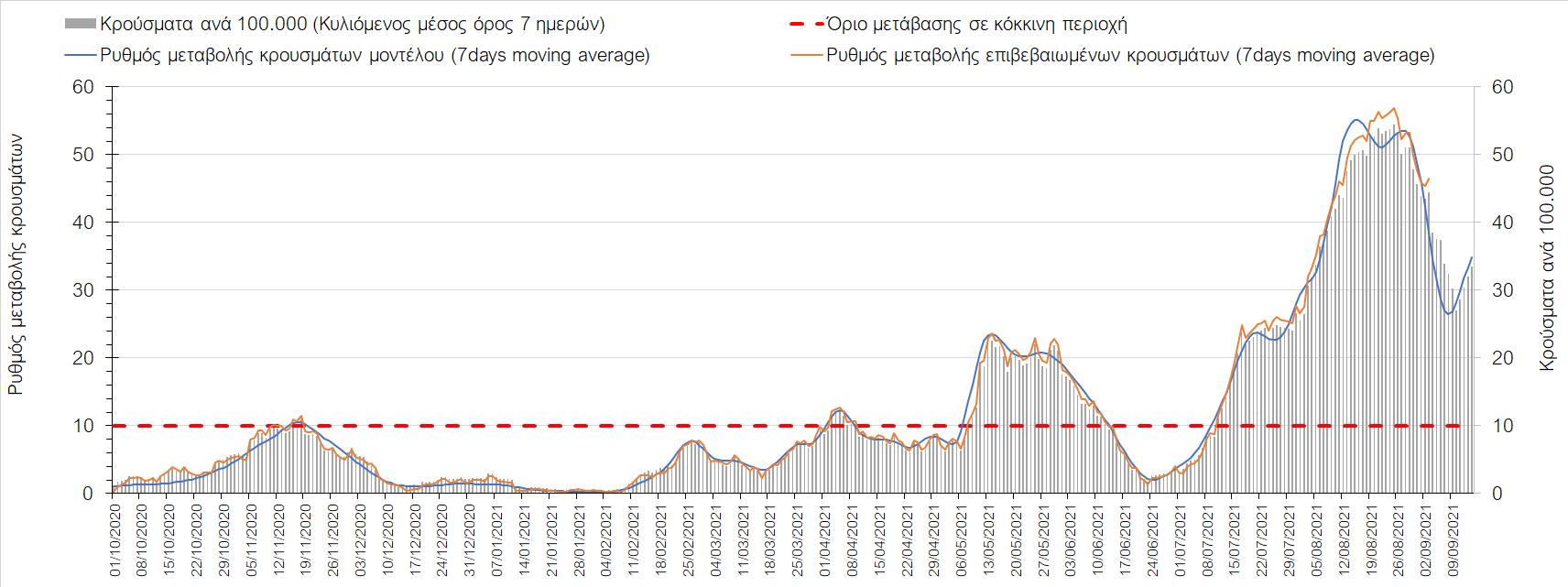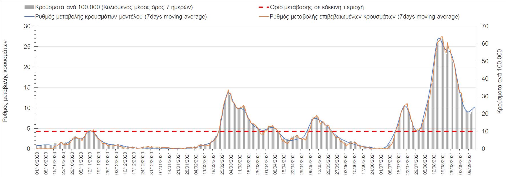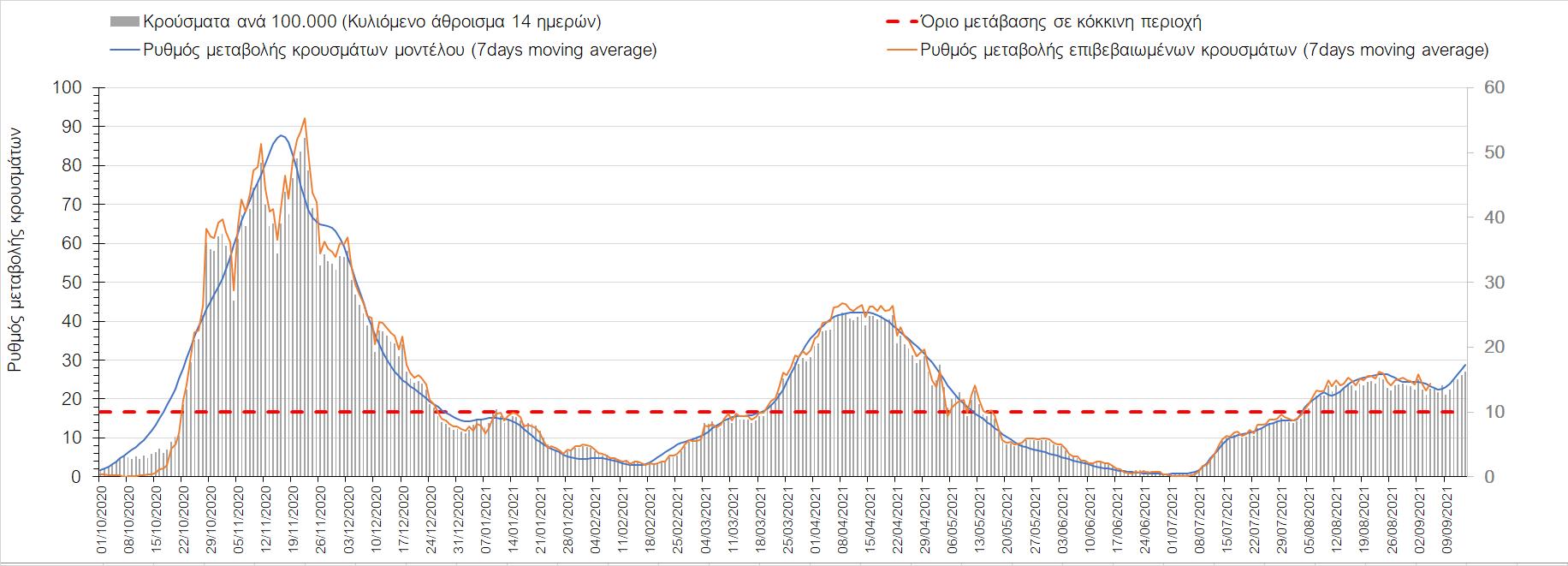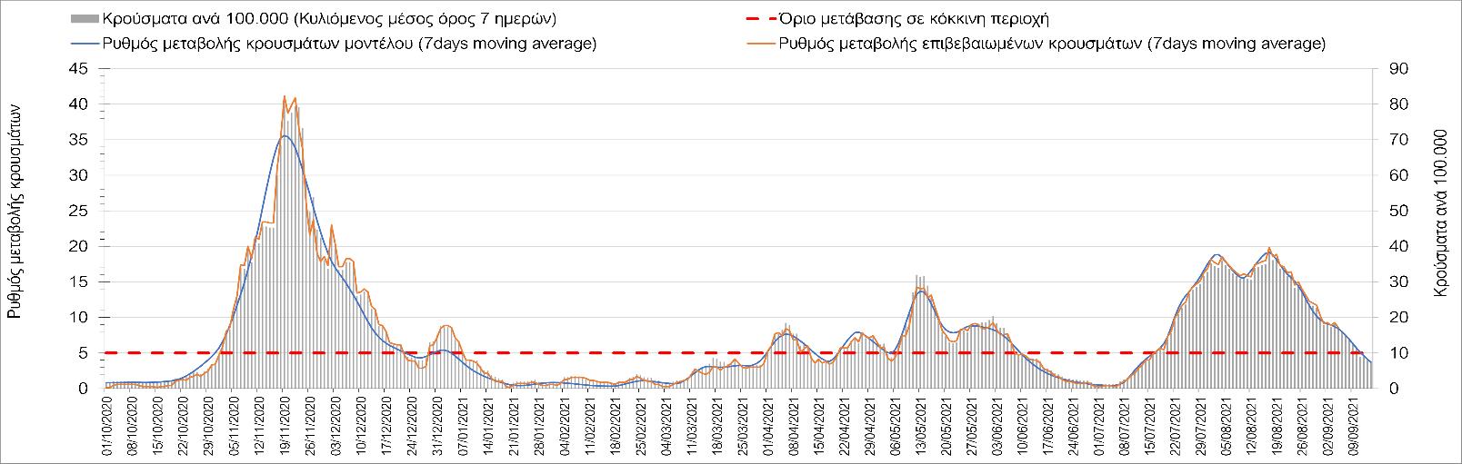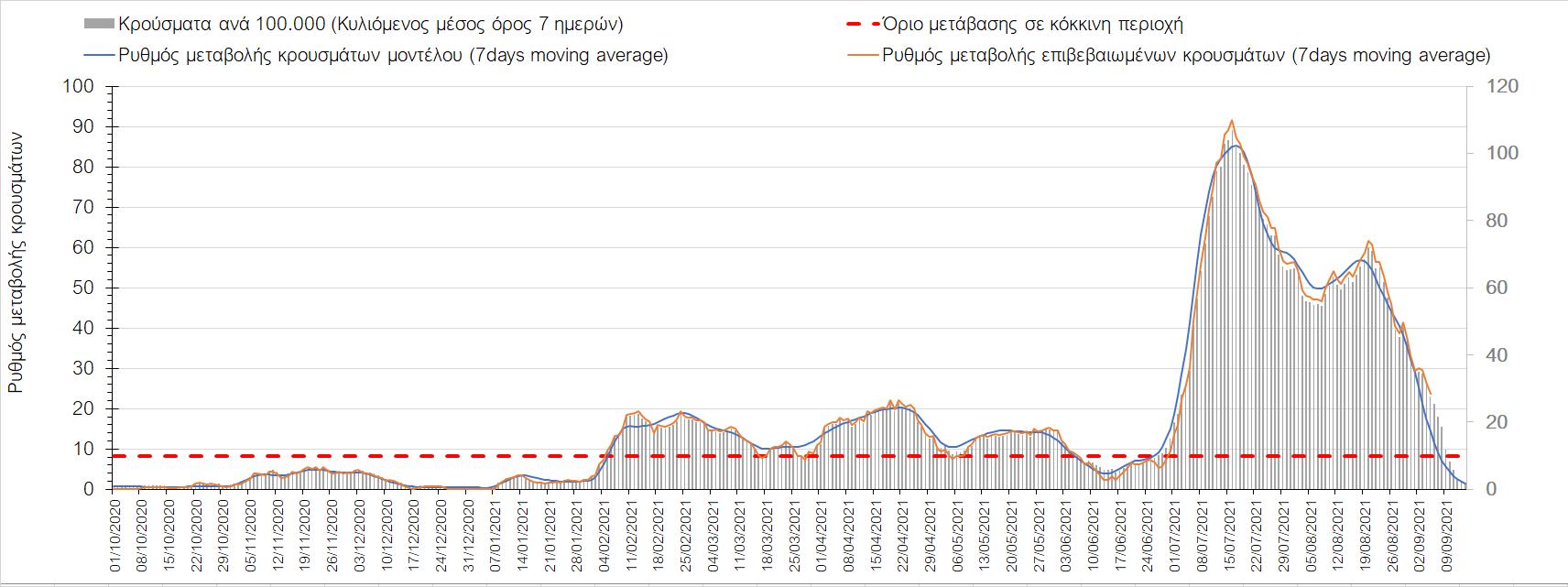 Αναμένουμε τις επόμενες ημέρες για να δούμε τις επιπτώσεις της επιστροφής του κύματος εξόδου του Αυγούστου στην πορεία της πανδημίας. Αξίζει επίσης να σημειωθεί ότι οι υψηλές θερμοκρασίες των προηγουμένων ημερών, συντέλεσαν στη μείωση της μεταδοτικότητας και συνέβαλλαν στη συγκράτηση του αριθμού των κρουσμάτων, ενώ το ίδιο θα συμβεί και στις επόμενες ημέρες.
