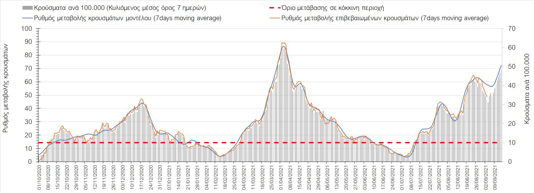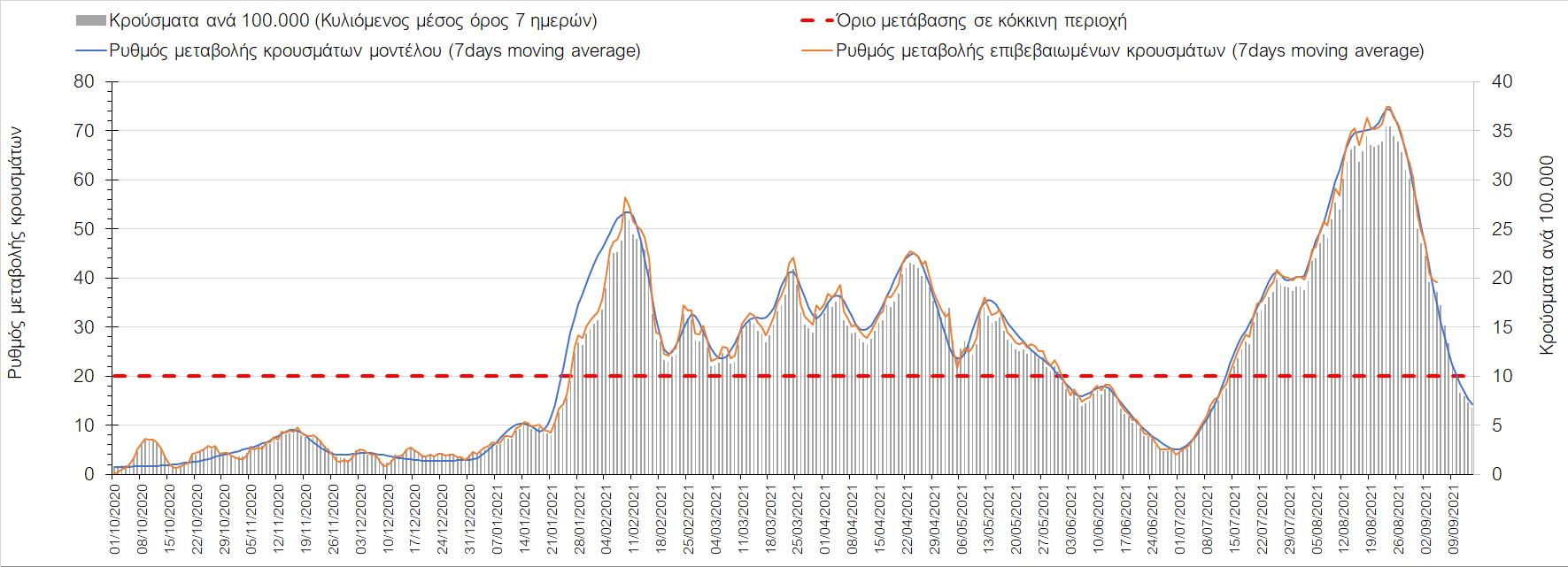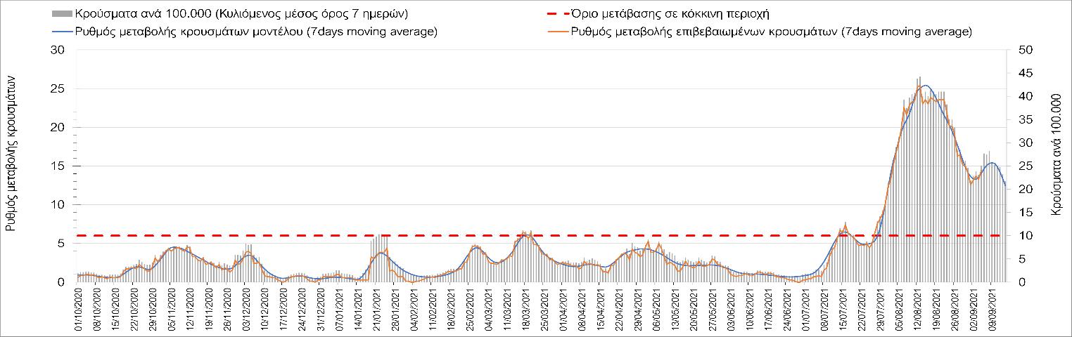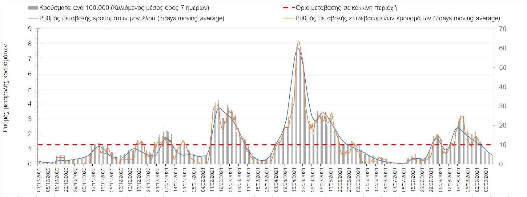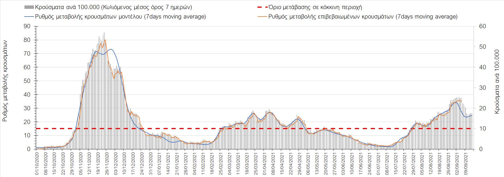 Αναμένουμε τις επόμενες ημέρες για να δούμε τις επιπτώσεις της επιστροφής του κύματος εξόδου του Αυγούστου στην πορεία της πανδημίας. Αξίζει επίσης να σημειωθεί ότι οι υψηλές θερμοκρασίες των προηγουμένων ημερών, συντέλεσαν στη μείωση της μεταδοτικότητας και συνέβαλλαν στη συγκράτηση του αριθμού των κρουσμάτων, ενώ το ίδιο θα συμβεί και στις επόμενες ημέρες.