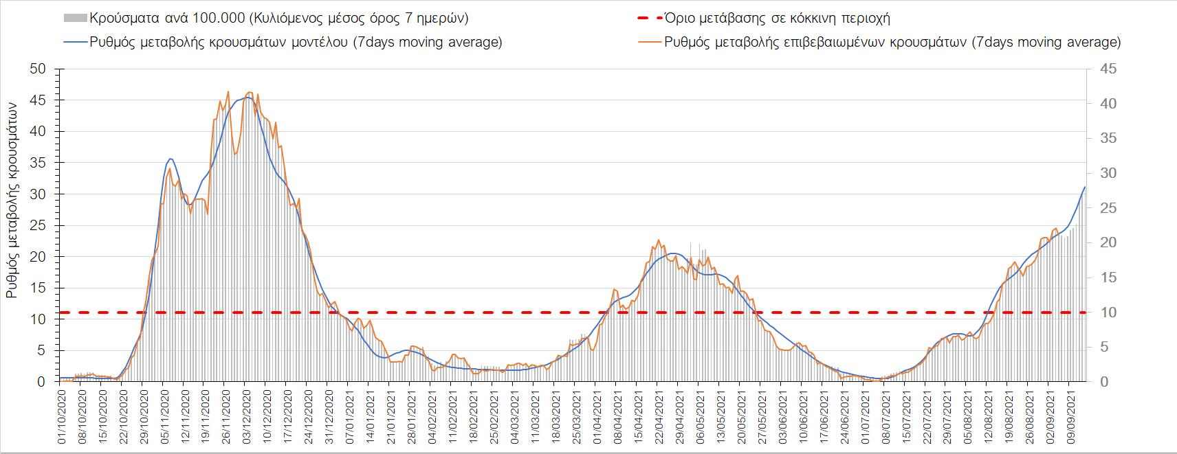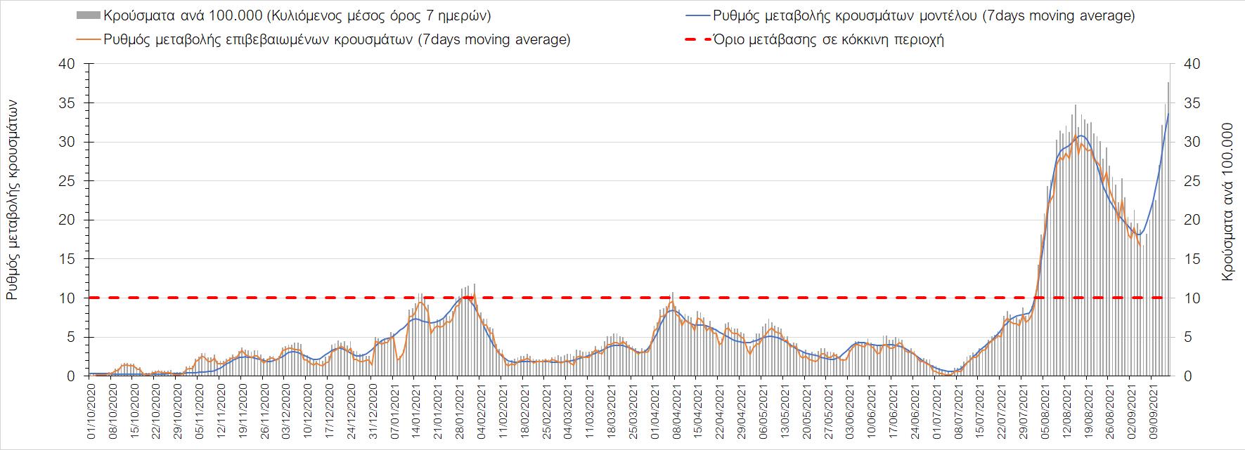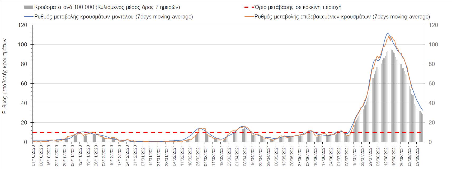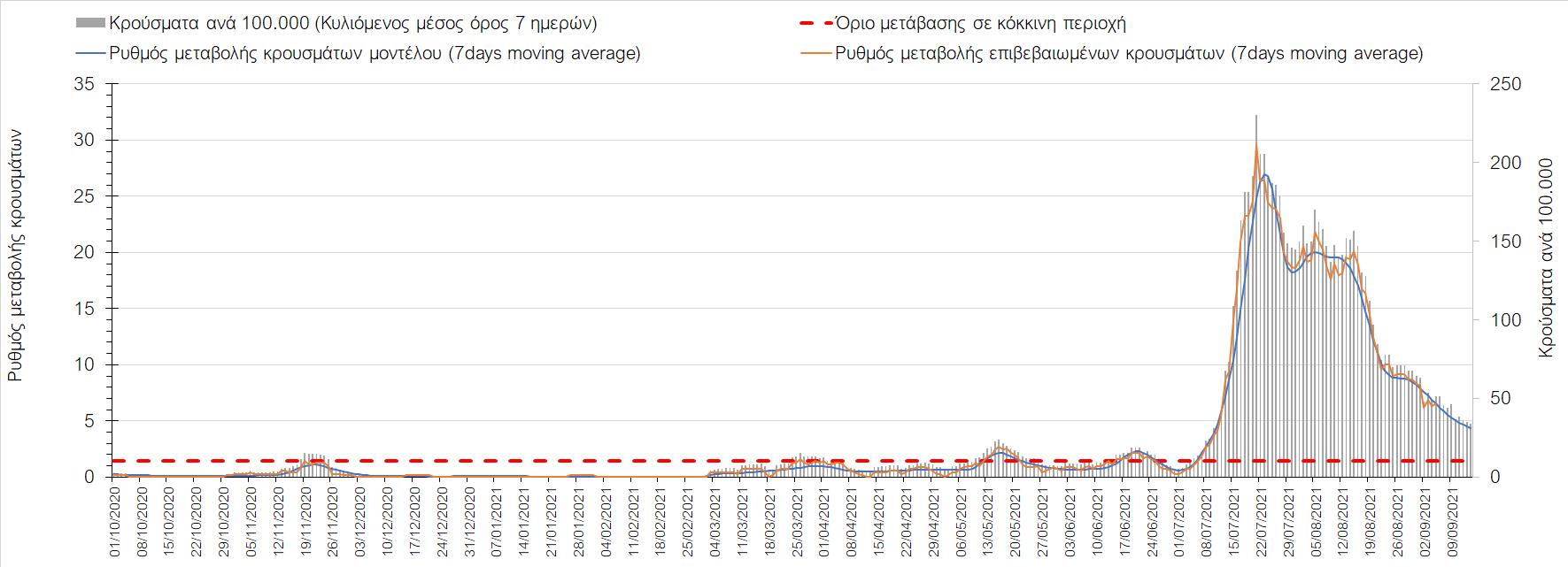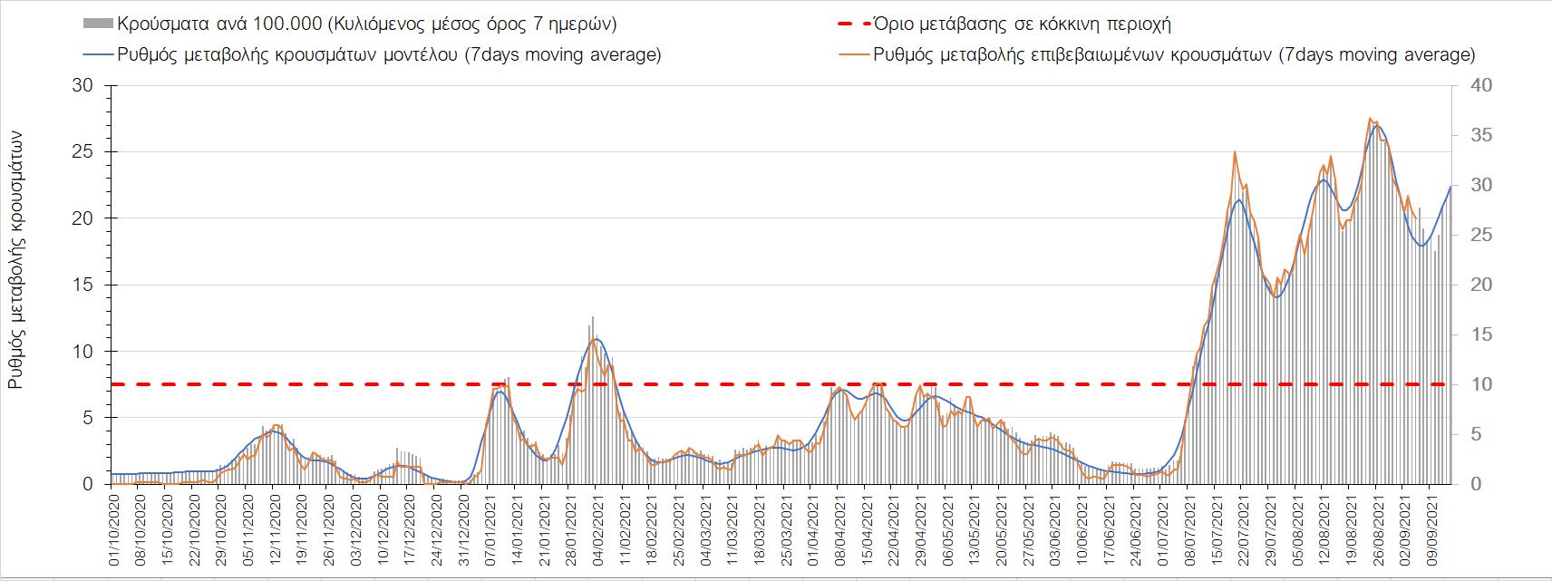 Αναμένουμε τις επόμενες ημέρες για να δούμε τις επιπτώσεις της επιστροφής του κύματος εξόδου του Αυγούστου στην πορεία της πανδημίας. Αξίζει επίσης να σημειωθεί ότι οι υψηλές θερμοκρασίες των προηγουμένων ημερών, συντέλεσαν στη μείωση της μεταδοτικότητας και συνέβαλλαν στη συγκράτηση του αριθμού των κρουσμάτων, ενώ το ίδιο θα συμβεί και στις επόμενες ημέρες.