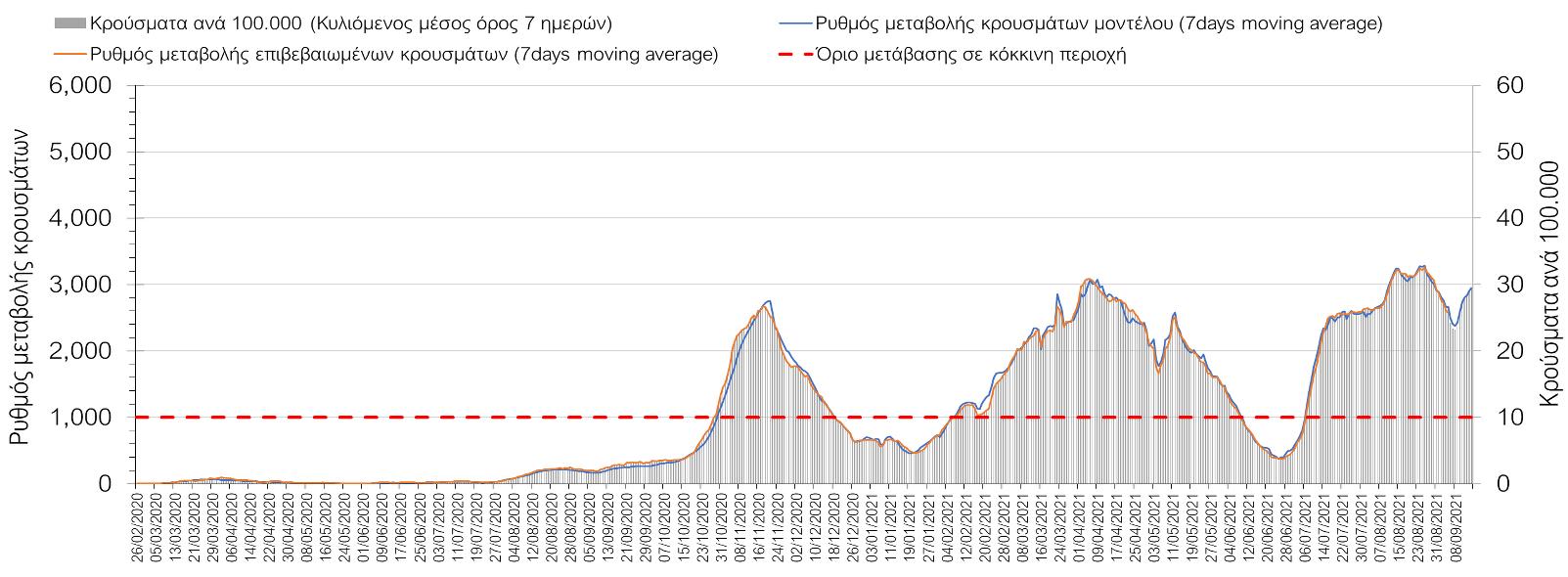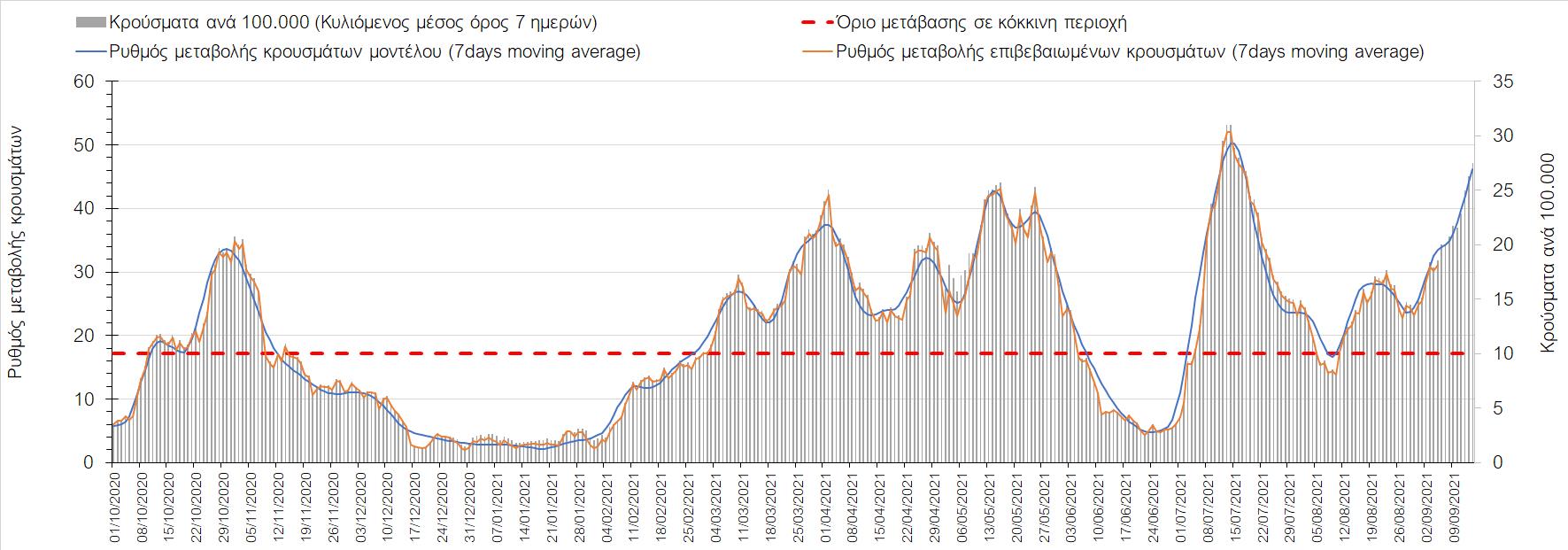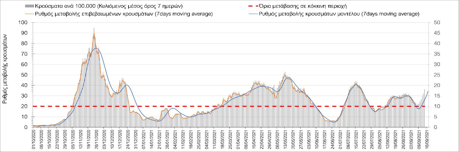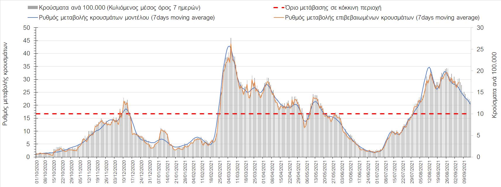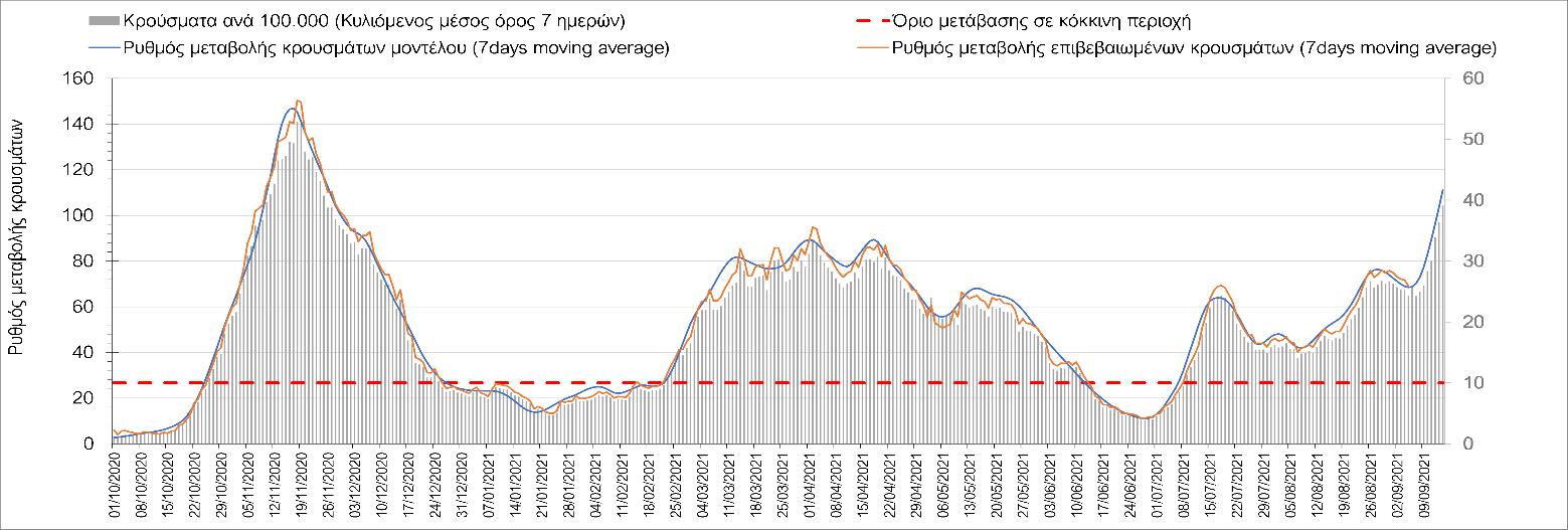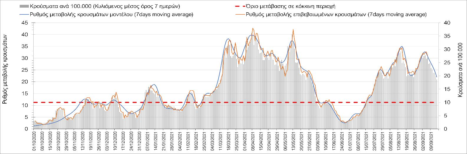 Αναμένουμε τις επόμενες ημέρες για να δούμε τις επιπτώσεις της επιστροφής του κύματος εξόδου του Αυγούστου στην πορεία της πανδημίας. Αξίζει επίσης να σημειωθεί ότι οι υψηλές θερμοκρασίες των προηγουμένων ημερών, συντέλεσαν στη μείωση της μεταδοτικότητας και συνέβαλλαν στη συγκράτηση του αριθμού των κρουσμάτων, ενώ το ίδιο θα συμβεί και στις επόμενες ημέρες.