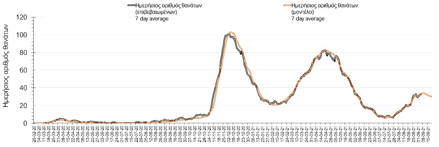 Ο αριθμός ημερήσιων θανάτων (43) που καταγράφηκε είναι σημαντικά αυξημένος σε σχέση με το Σάββατο (30). Όπως είχαμε προβλέψει ο κυλιόμενος εβδομαδιαίος μέσος όρος που είναι 31 ακολουθεί πλέον την ανοδική τάση των ασθενών σε κρίσιμη κατάσταση.