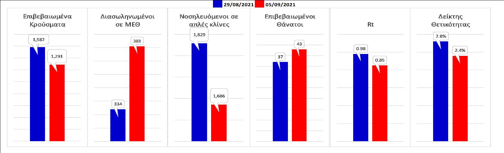 Σχήμα 58. Συγκριτικά αποτελέσματα της επιδημιολογικής εικόνας της Κυριακής (05/09/2021) σε σχέση με την προηγούμενη (29/08/2021)