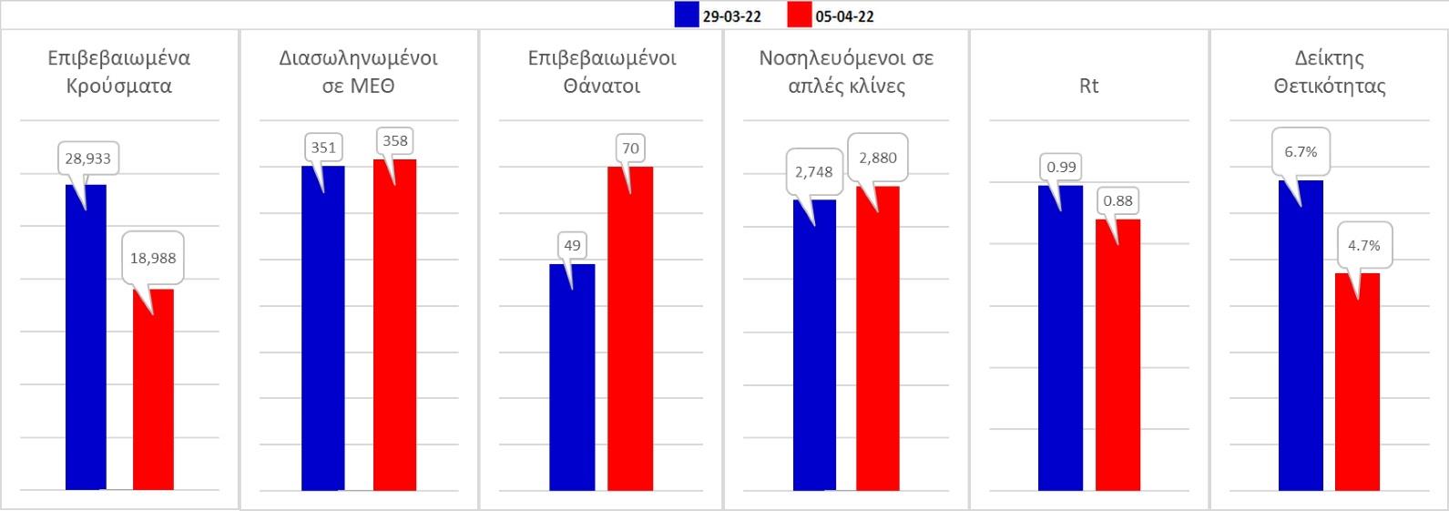 Σχήμα 59. Συγκριτικά αποτελέσματα της επιδημιολογικής εικόνας της Τρίτης (05/04/2022) σε σχέση με την προηγούμενη (29/03/2022)