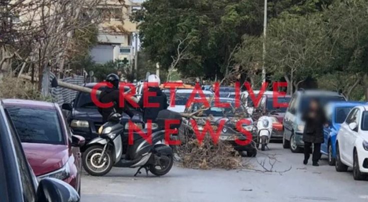 Οι ισχυροί νοτιάδες δεν αφήνουν τίποτα όρθιο. Στο Ηράκλειο ένα δέντρο στη Γεωργίου Γεωργιάδη έπεσε σε ένα σταθμευμένο ΙΧ, παραλίγο να χτυπήσει και διερχόμενο όχημα, δημιουργώντας αναστάτωση σε όσους κινούνταν εκείνη την ώρα στο σημείο.