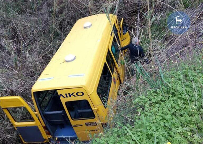 Παραλίγο τραγωδία στη Ρόδο, όταν σχολικό λεωφορείο έπειτα από τρελή πορεία έκανε βουτιά σε ρέμα.
