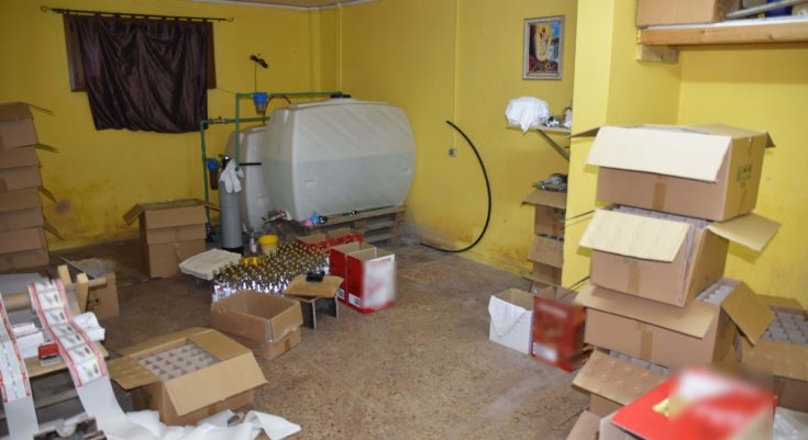 Έπειτα από σχετικές πληροφορίες του Συντονιστικού Επιχειρησιακού Κέντρου (ΣΕΚ) εντοπίστηκε το παράνομο εργαστήριο παρασκευής και εμφιάλωσης αλκοολούχων ποτών, αλλά και δύο άλλους χώρους αποθήκευσης παράνομων-νοθευμένων αλκοολούχων ποτών και πλαστών υλικών εμφιάλωσης και συσκευασίας αλκοολούχων ποτών (πώματα, μεμβράνες αυτοκόλλητες ετικέτες).