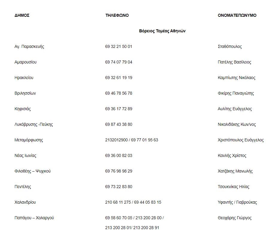 Δείτε αναλυτικά τη λίστα με τα τηλέφωνα και τους αρμόδιους υπάλληλους ανά δήμο: