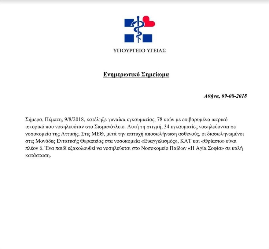 Μάλιστα τα όσα είπε ο κ. Γιαννάκος επιβεβαίωσε το υπουργείο Υγείας, καθώς με διευκρινιστική του ανακοίνωση επισημαίνει πως η ηλικιωμένη νοσηλευόταν σε δωμάτιο και όχι στη Μονάδα Εντατικής Θεραπείας.