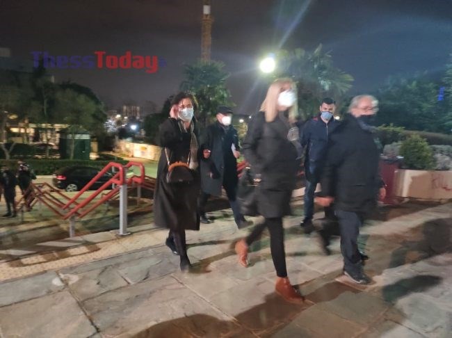 Στο σημείο επίσης βρίσκεται ο νέος συντονιστής του ΣΥΡΙΖΑ στη Θεσσαλονίκη, Κώστας Αμπατζάς και ο πρώην πρύτανης του ΑΠΘ, Γιάννης Μυλόπουλος.