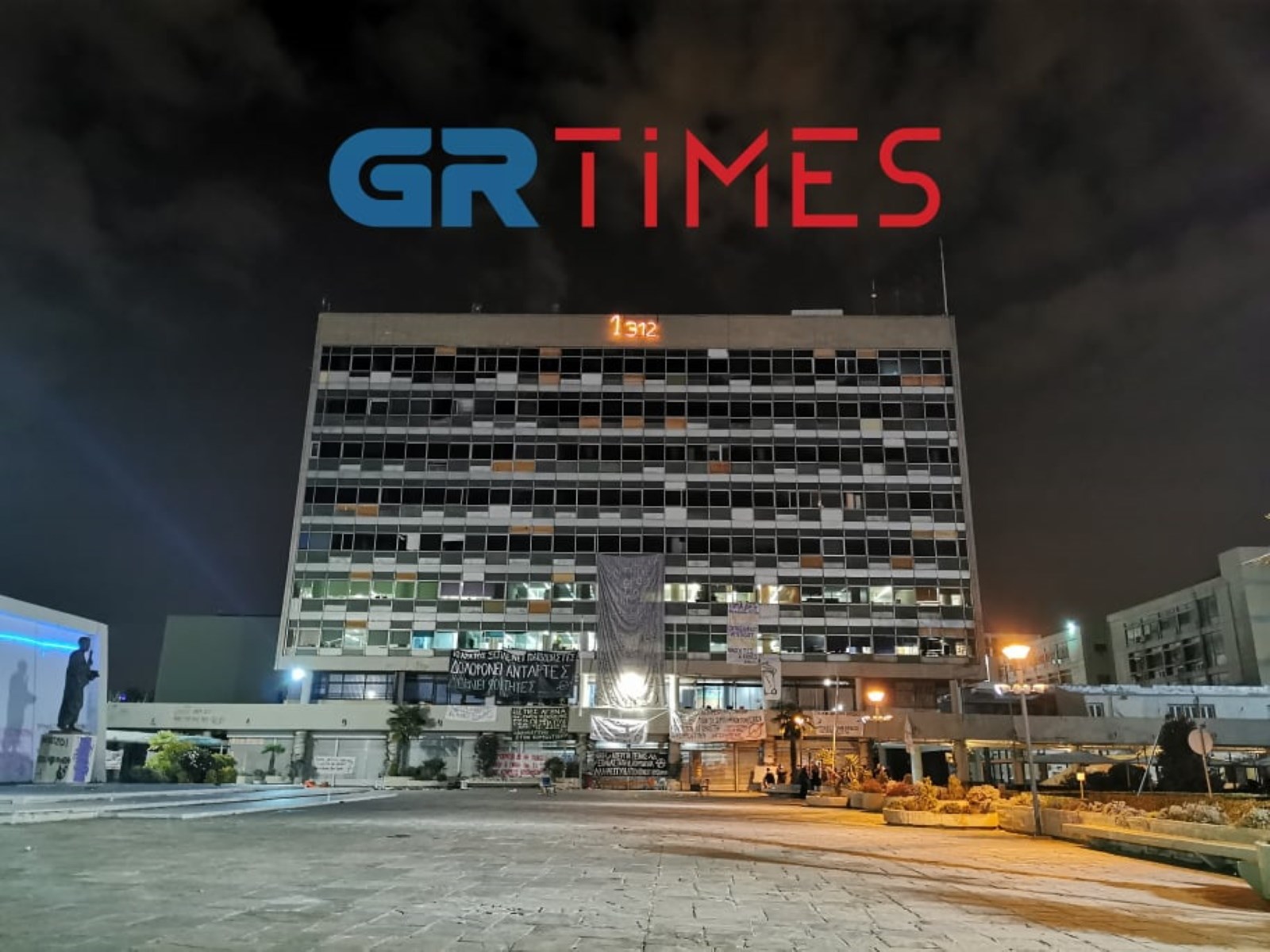 Το σύνθημα “1312” κατά των αστυνομικών ανήρτησαν φοιτητές στην κορυφή του κτιρίου διοίκησης της πρυτανείας του ΑΠΘ.